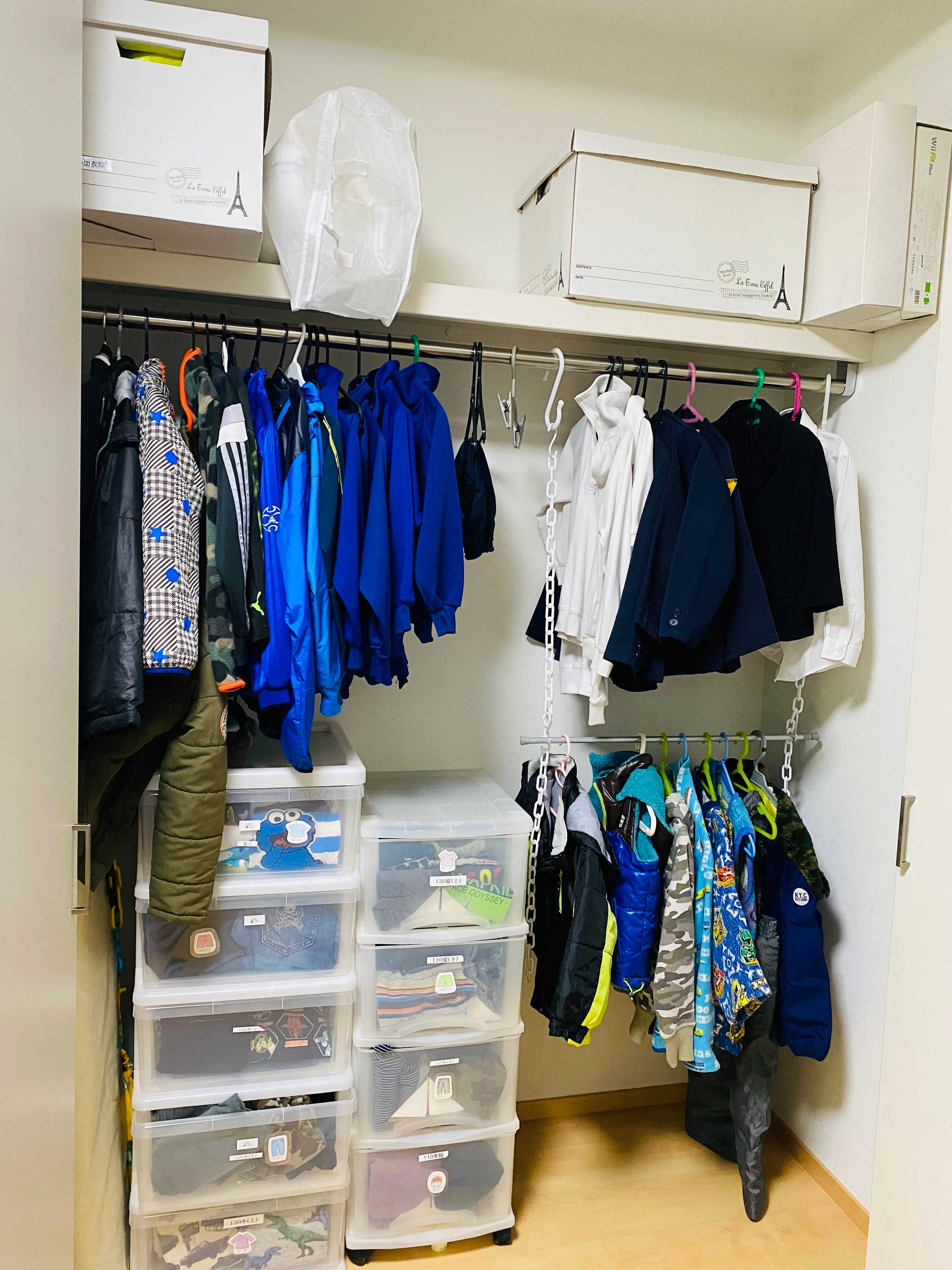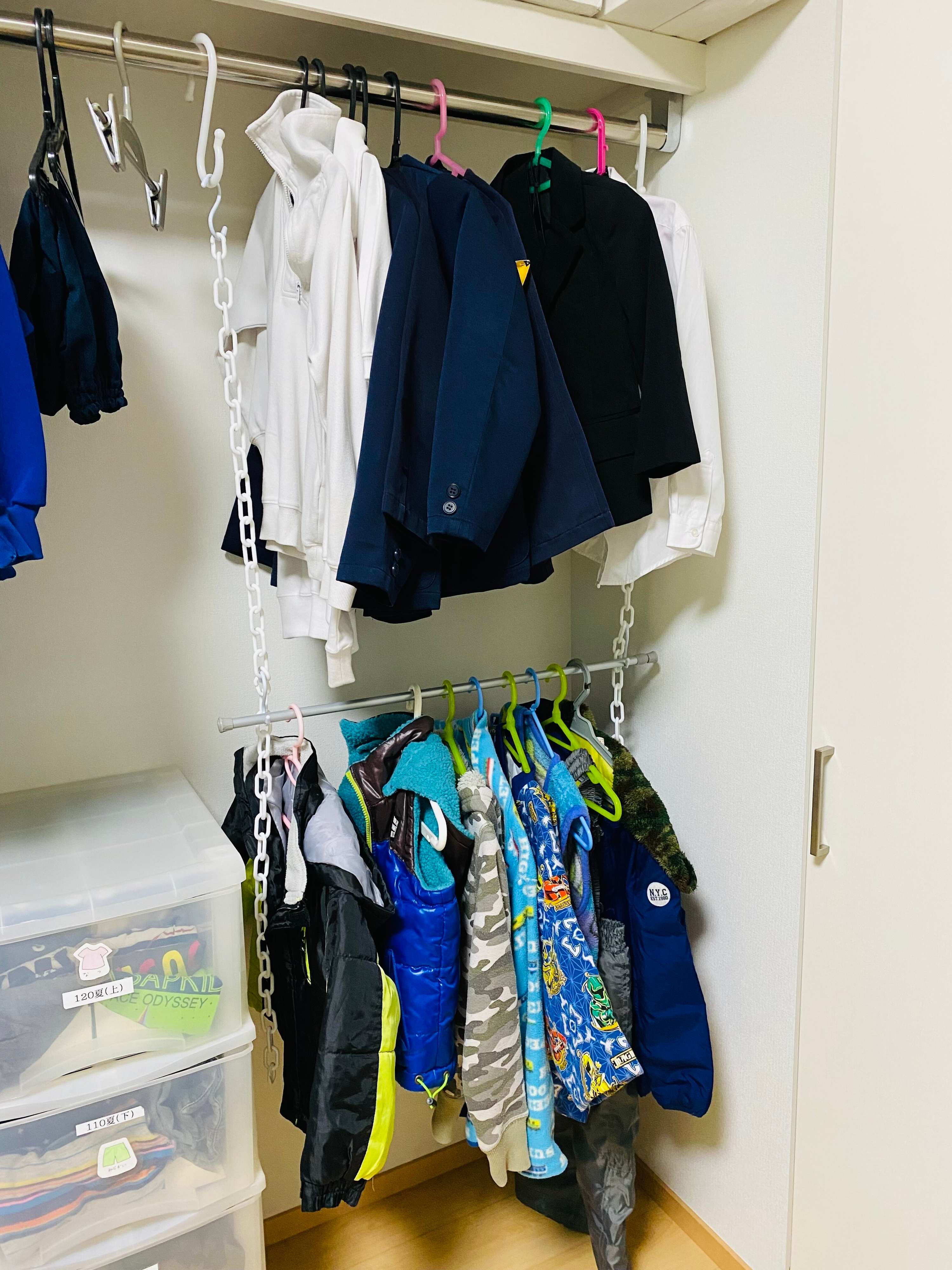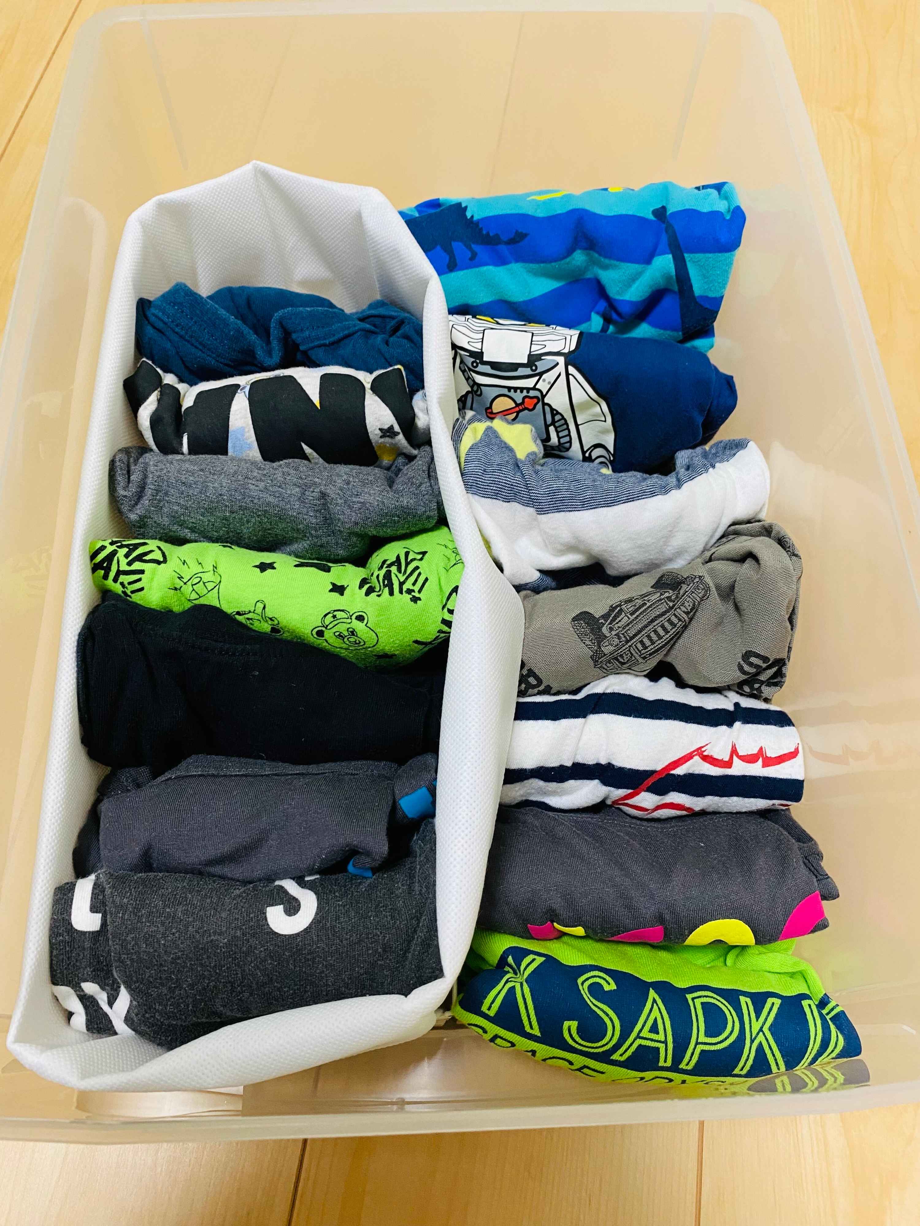 ぐちゃぐちゃになりがちな子ども服の収納もこの通り。