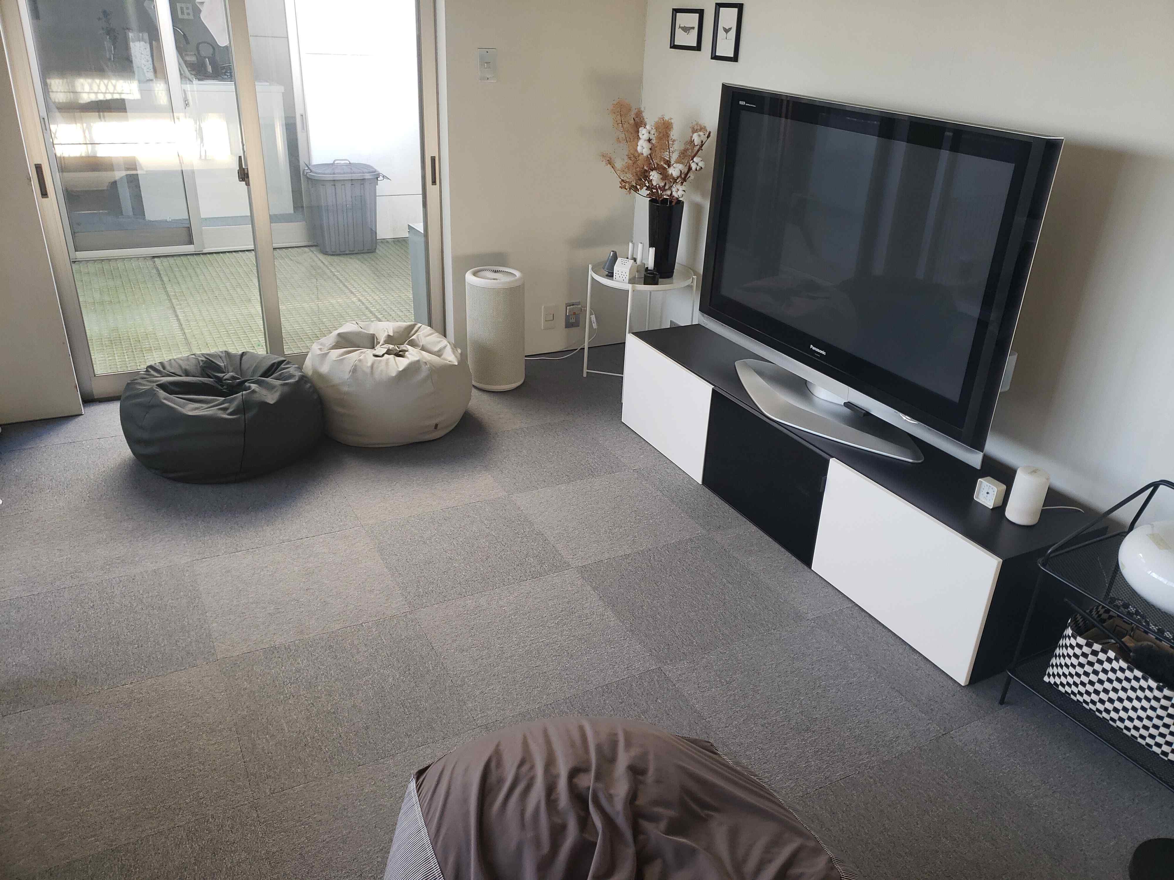 大きなソファーも傷んできたので捨て、1人掛けのソファーと大きめのクッションで寛ぐようにすることで、掃除のしやすさと広さを確保しました。