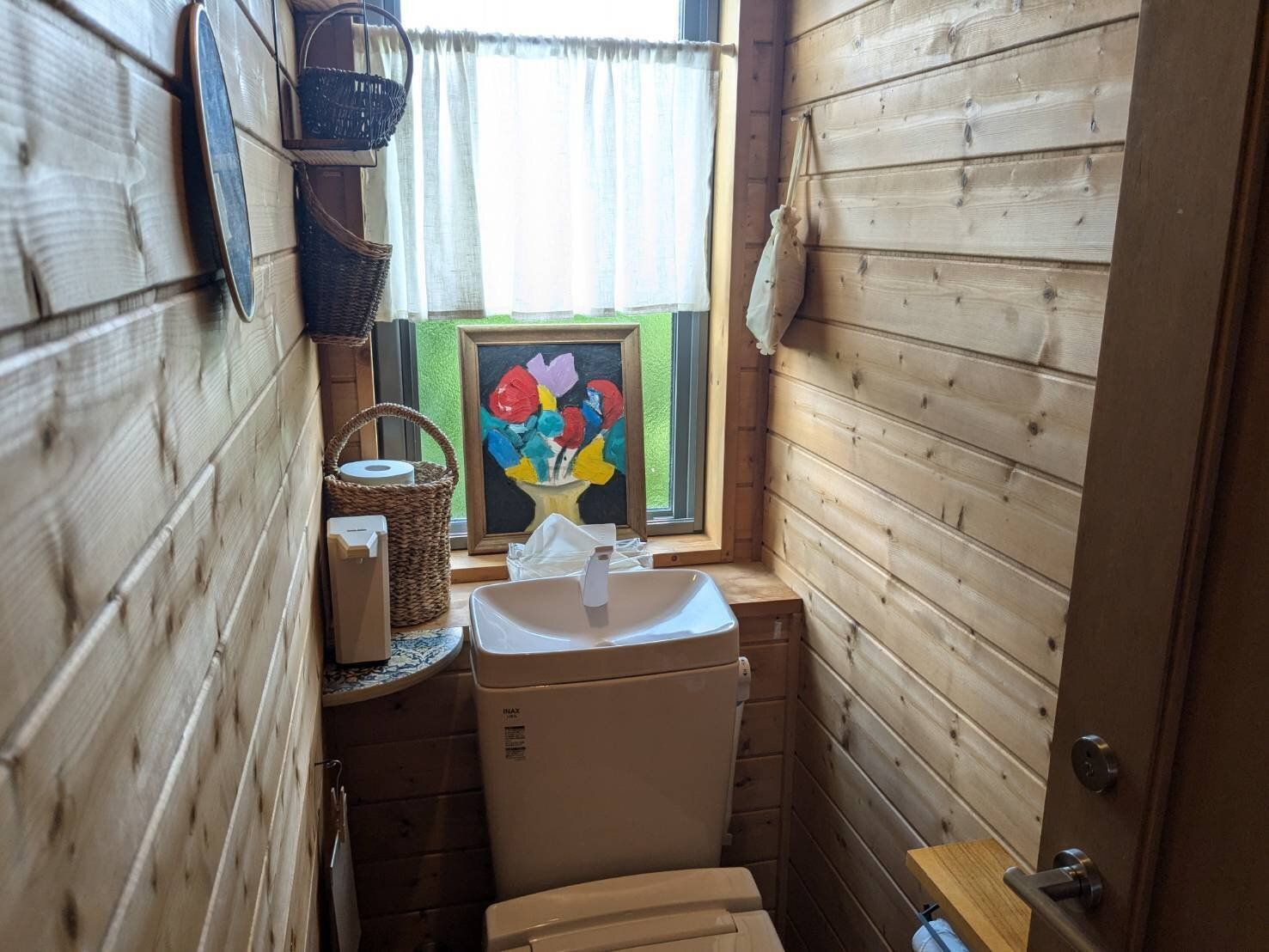 そのまま置くのもいいですが、筆者宅のようにトイレのスペースが限られている場合は、通気性のよい巾着などに入れて吊るすと邪魔になることなく設置できます。レースの巾着は、種類豊富なセリアがオススメですよ。