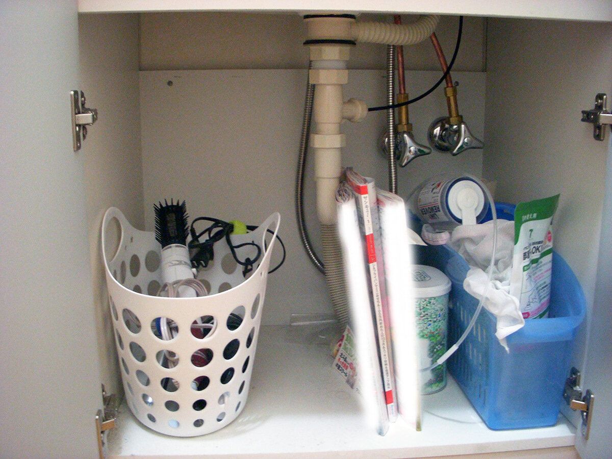 既成の洗面台なら、無印良品のポリプロピレンケースがもしかしたらぴったり入るかもしれません。