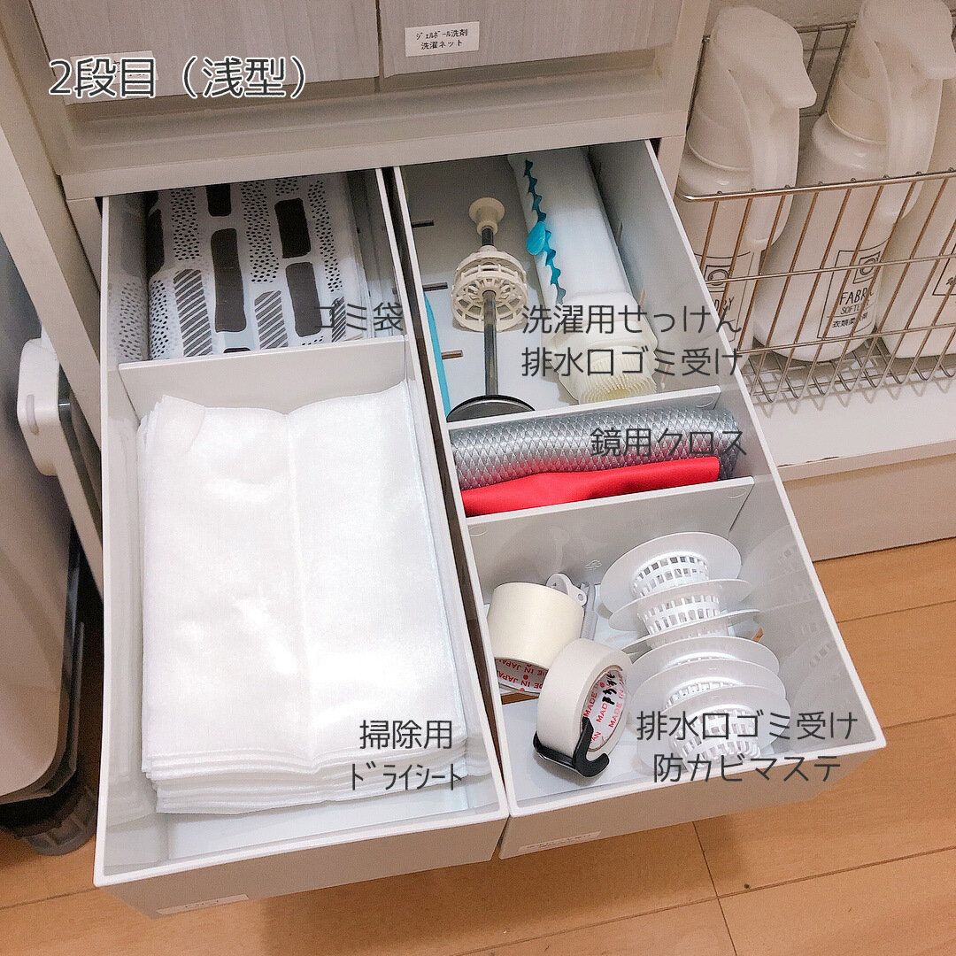 隣が洗濯機なので、すぐに手に取れてストレスフリーなんです。