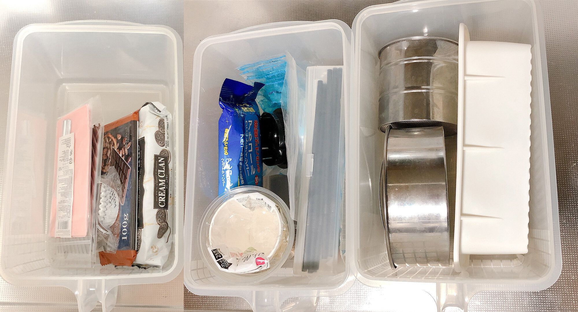 取っ手付きのケースを使うことで、2段目までは手を伸ばせば出し入れ可能。