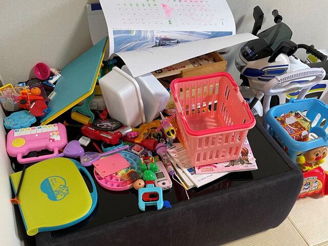 例えば、ティッシュや袋のゴミだったり、遊び終わった玩具だったり、ヘアゴムや小さな飴などのお菓子だったり、読みかけの本や新聞だったり。きっとすぐに片付くモノばかりだと思います。