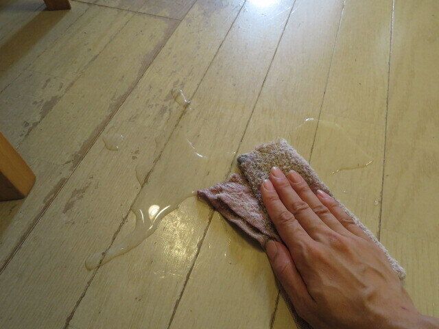 少量の水をこぼした時は切りっぱなしの小さなぞうきんを、コップ1杯分こぼしたような時は古いフェイスタオルをそのまま使います。