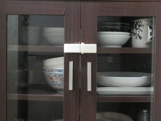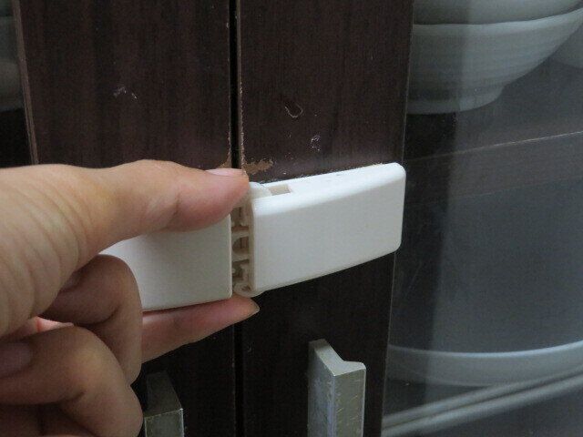 今でも、食器棚の扉には過去のなごりのチャイルドロック。