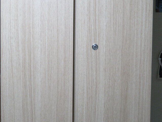 夫は大量の本を持っているため、業務用の鍵つき本棚を使っています。
