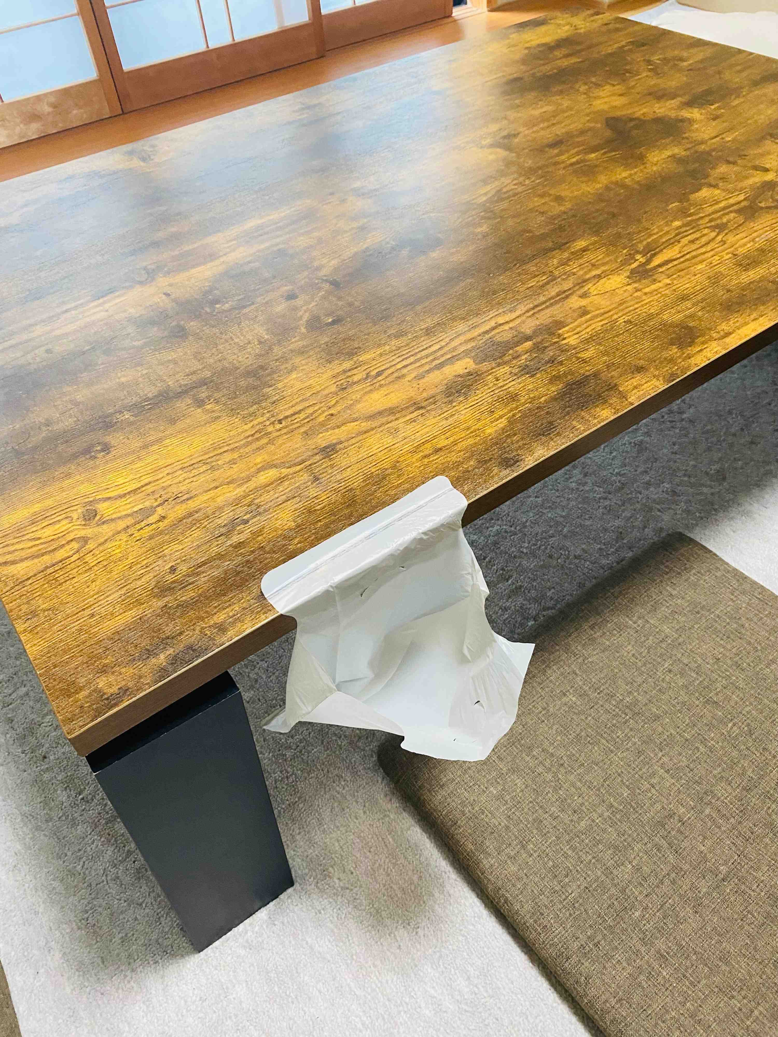 我が家ではゴミ箱も極力置かず、テーブルに貼るタイプのゴミ袋を使っています。