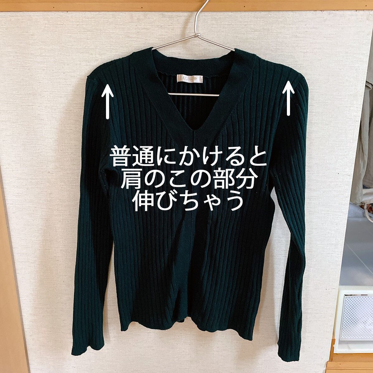 ニットを普通にハンガーにかけると、肩の部分がニット自体の重みで伸びてしまいがち。