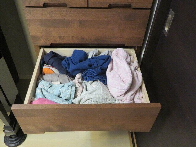 シーズン外のパジャマはたたみ、使用中のパジャマはたたまずに引き出しに押しこんでいます。