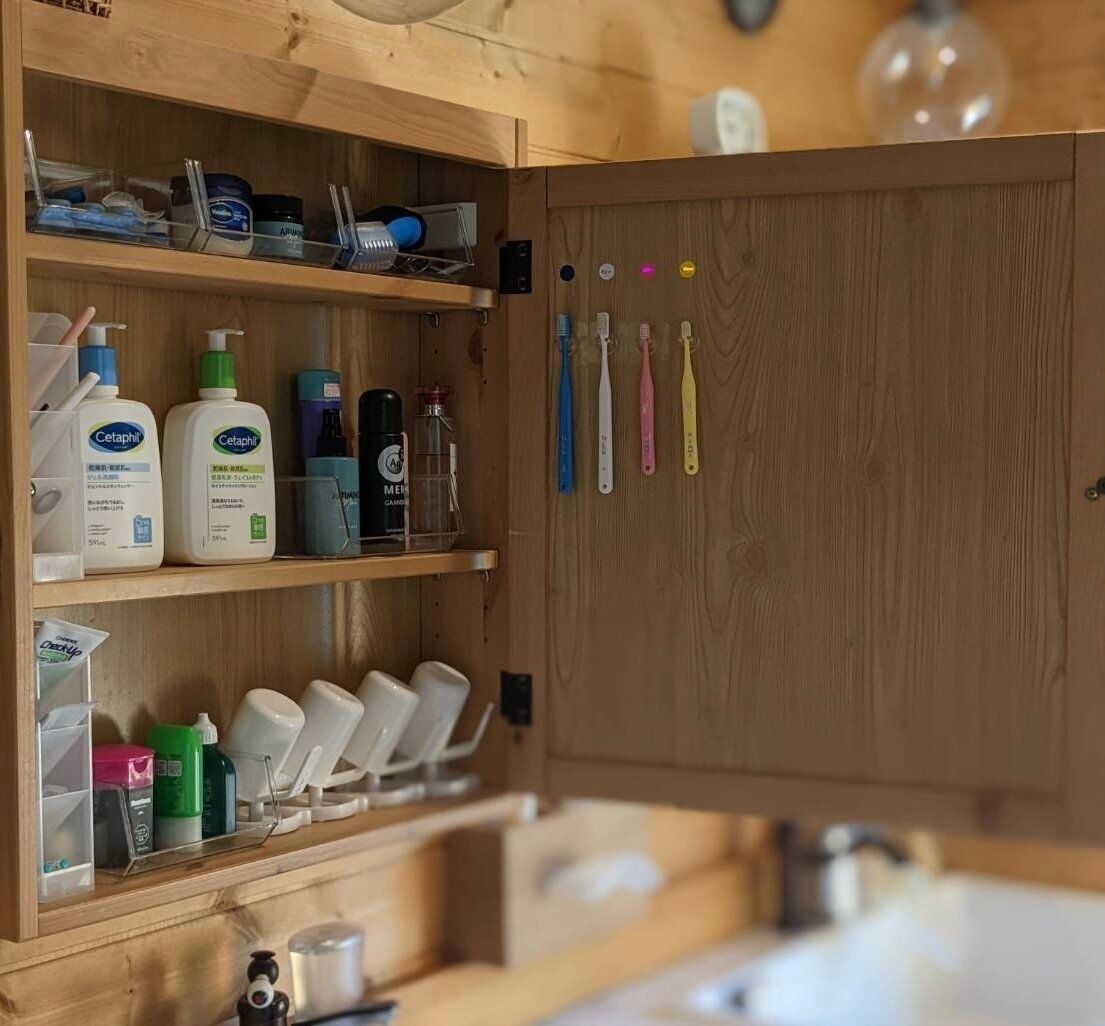 「誰の(何色の)」歯ブラシのストックが、あと「何本」あるか、月1の交換タイミングでパッとわかるので、買い忘れ防止になっています。