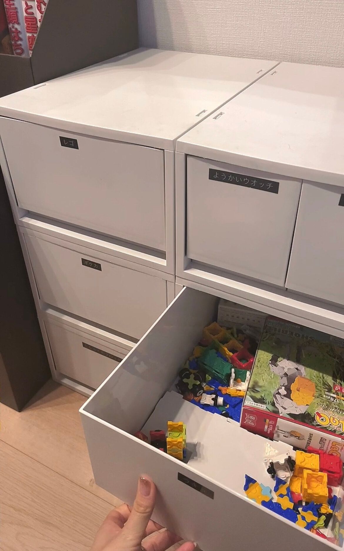 細々したおもちゃも、種類ごとに収納することで子供でもお片付けが簡単にできるようになります♪