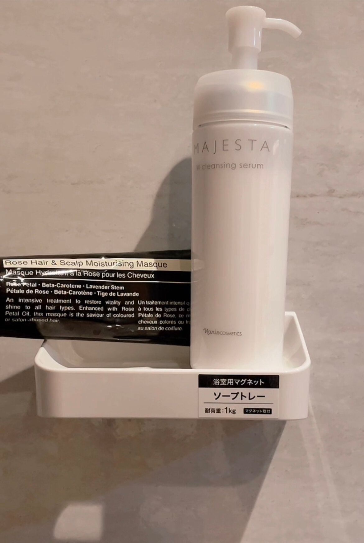 浴室用のマグネット収納を使うと、石鹸類などを浮かせることが可能に◎