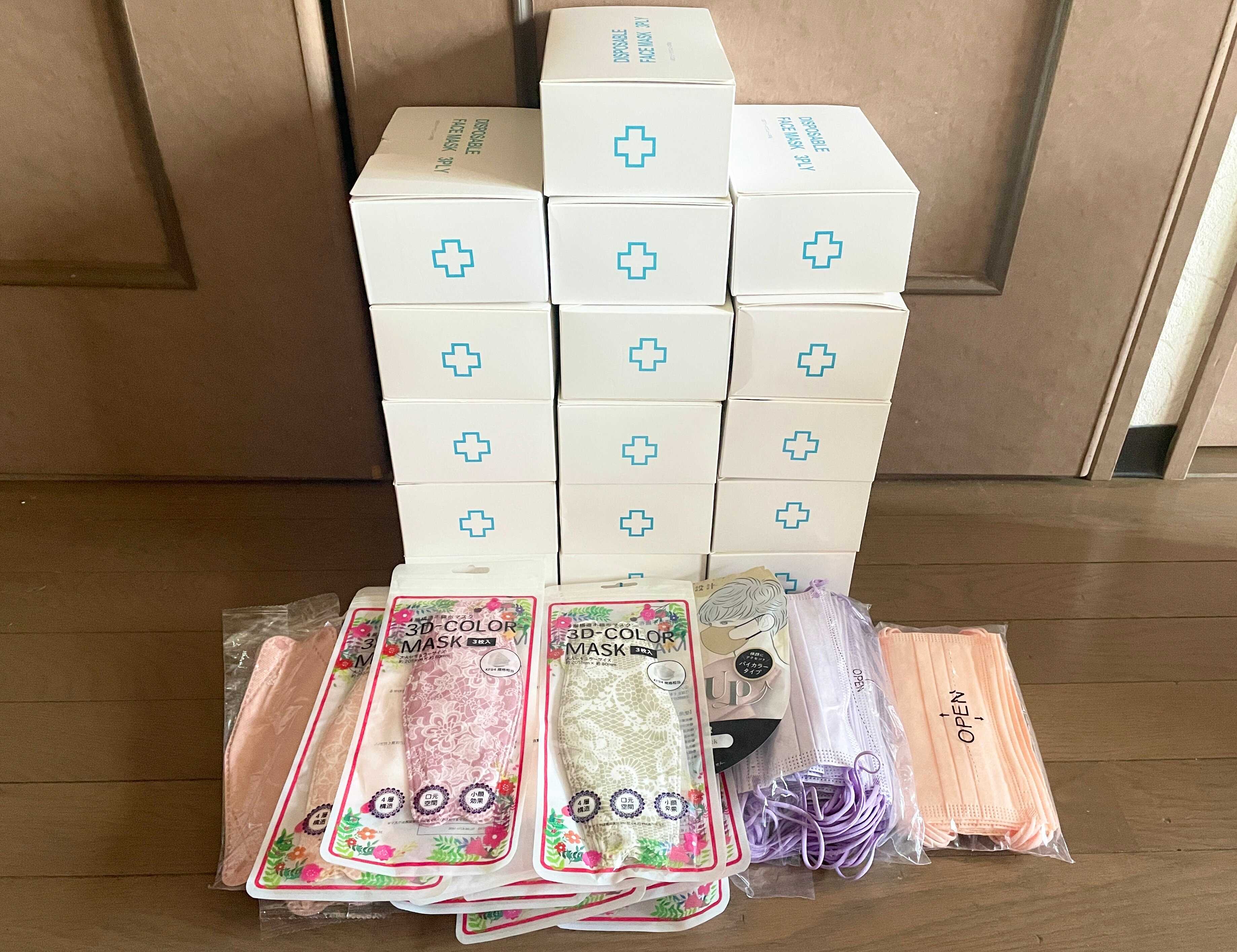 傷むものではないから、あって困ることはないからと、安いときにある程度まとめて買ったのと、夫の職場で白い普通のマスクが余っていてたくさん貰えたんです。