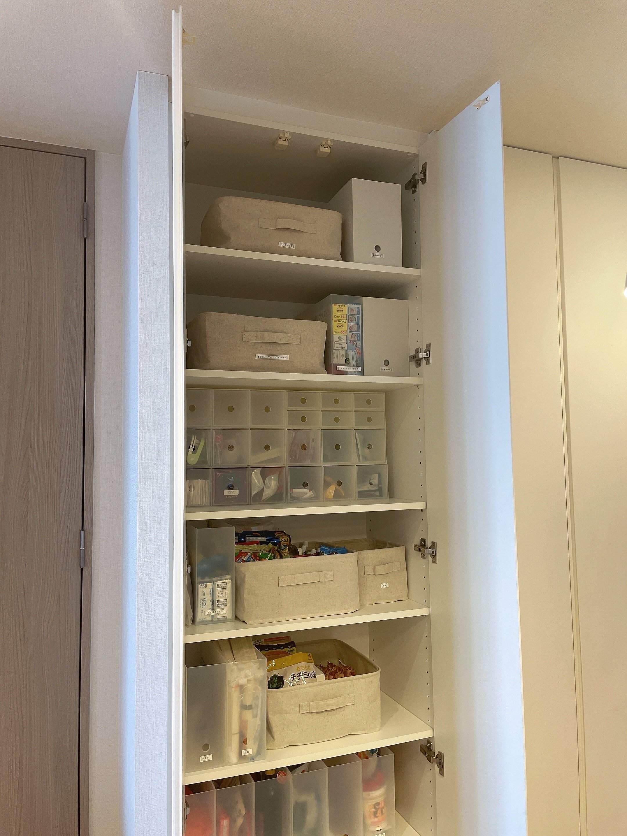 そして、収納アイテムにラベルをつけると、どこに何があるか一目でわかるようになります。また、ラベルをつけることで、家族全員に情報を共有できるのでおすすめです。誰でも簡単にものを見つけ、元の場所に戻すことができるようになります。
