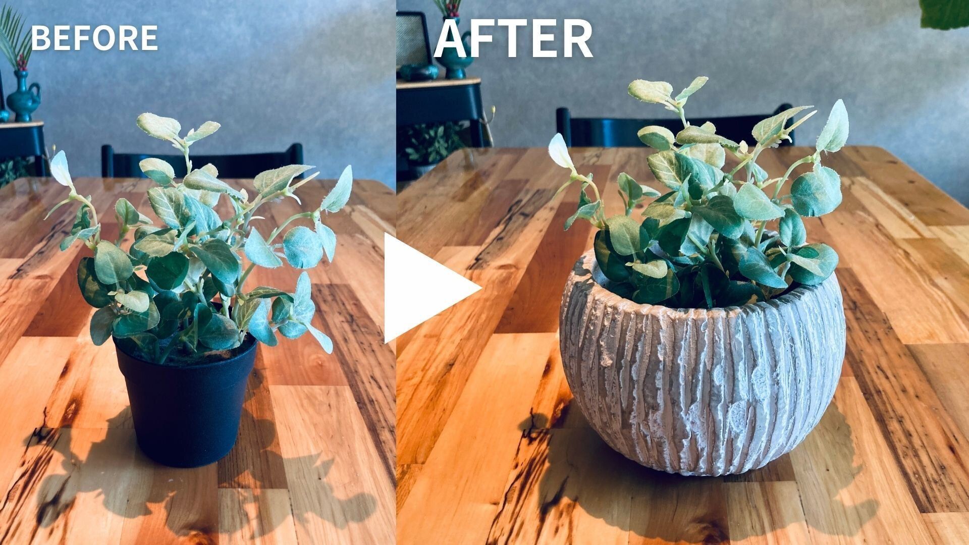 この方法は、本物の植物であっても同様です。鉢が変わるだけで、全く違う植物に見えることも!気分に合わせて鉢を交換すれば、模様替えの一環として楽しむことができます。