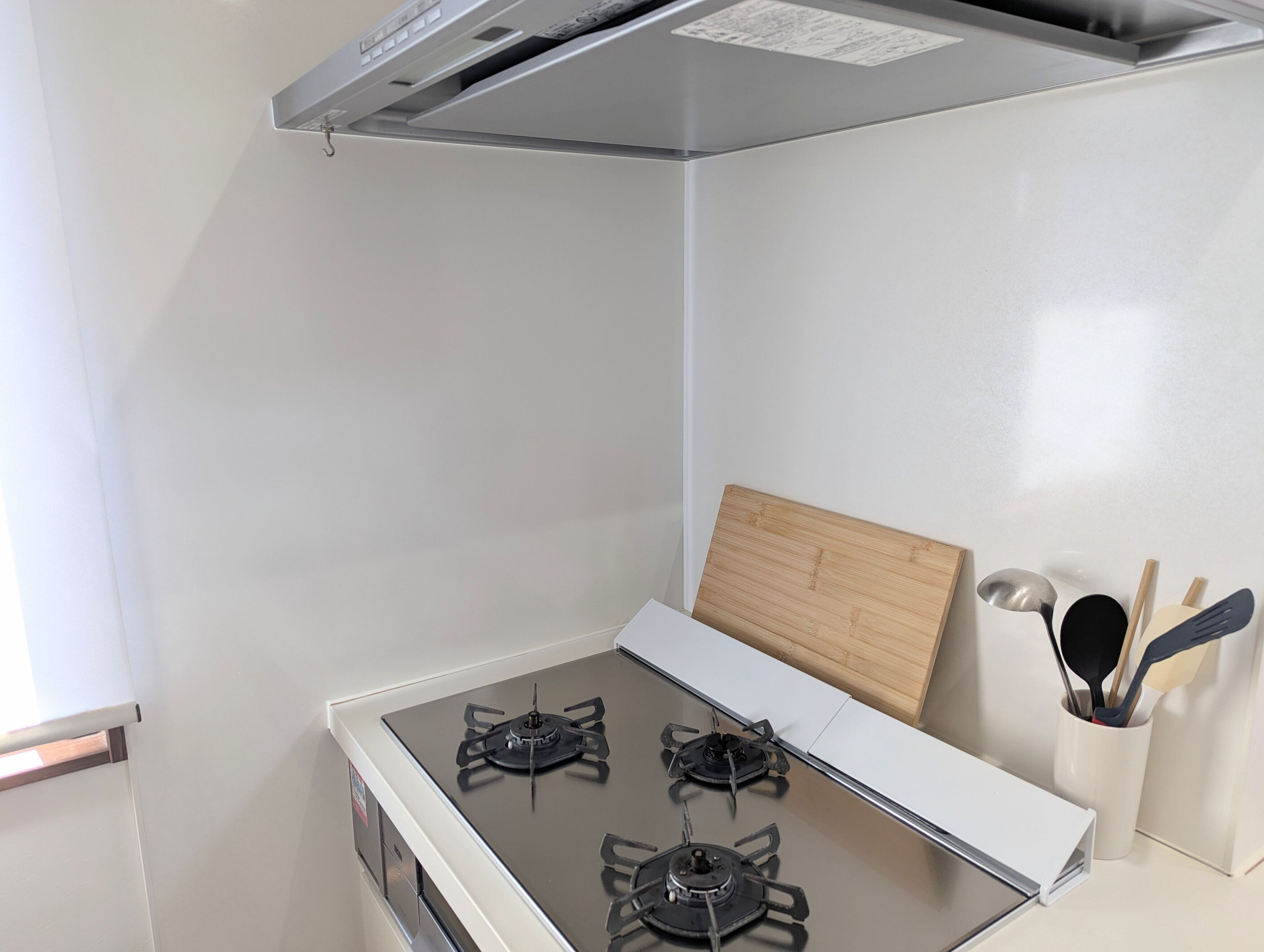 これをレンジフードの端につけて、しっかり水を切ったボトルブラシを引っかけ収納。翌朝にはすっかり乾いているので、シンク下の引き出しに戻すという流れ。こうすれば調理中に邪魔になることなく、日中はスッキリした見た目をキープできます。
