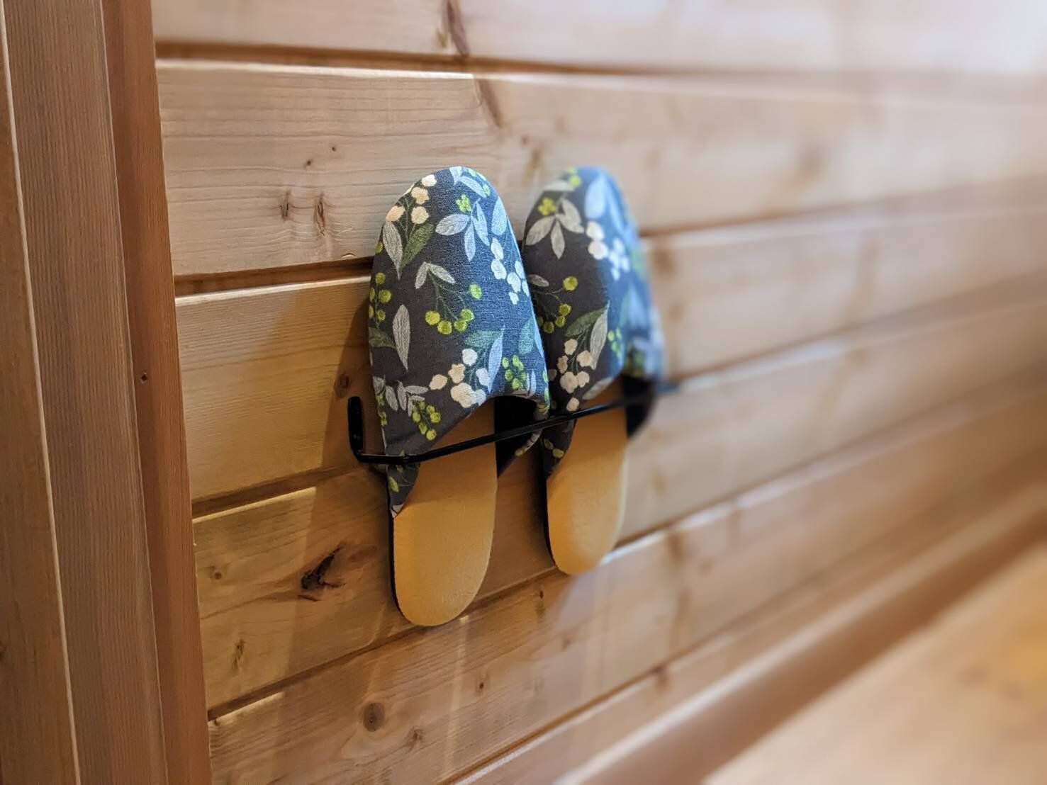 筆者宅で数えきれないくらい取り入れているのが、アイアンバーを使った「浮かす収納」。狭いトイレにそのまま置くと邪魔になるスリッパを、アイアンバーに引っ掛けて「浮かす収納」に。