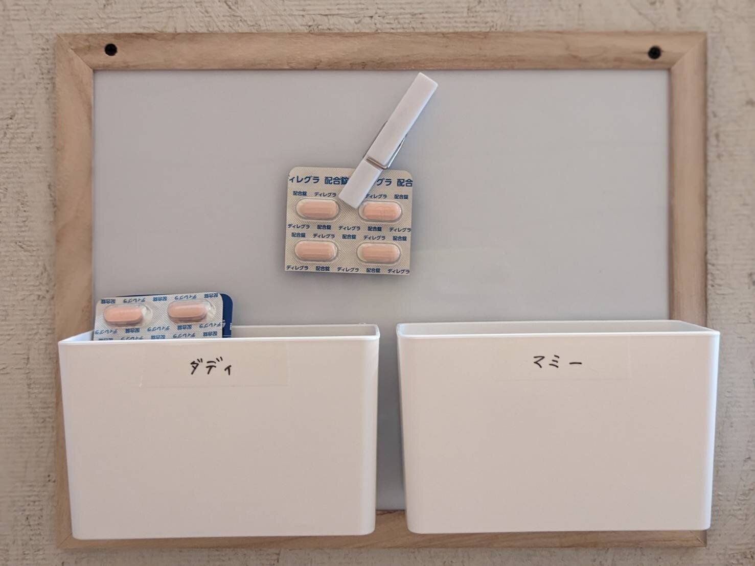 そこで筆者宅で取り入れているのが、薬の「人別収納」。100円ショップのキッチンコーナーにあるマグネットケースを使って、人別に分けて収納するようにしています。引き出しの中で家族分が混ざることがないので、管理しやすくてオススメですよ。