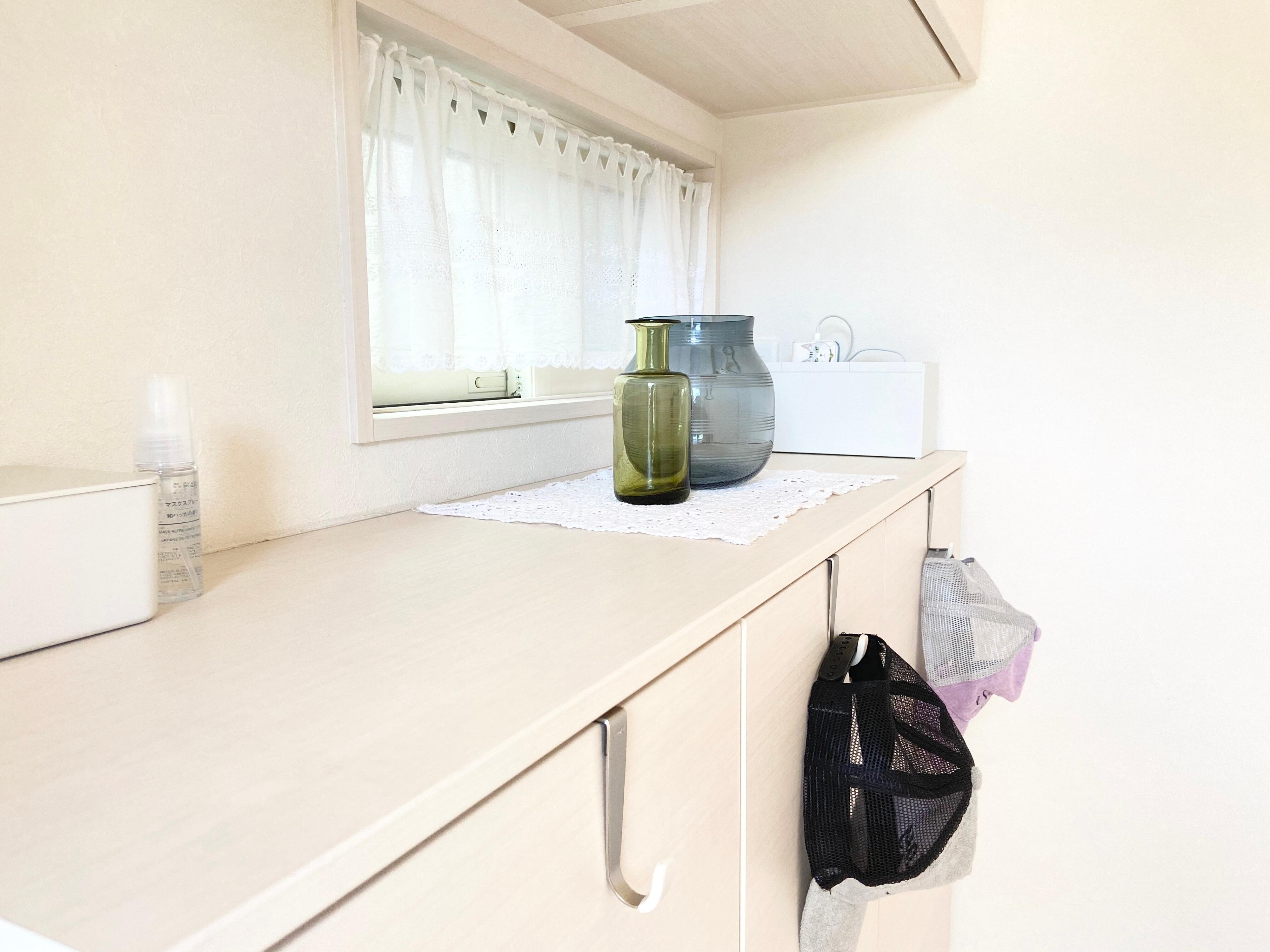 玄関の靴箱の上は、ついつい色んなものを飾りたくなりますが、飾る小物・雑貨は厳選するのがポイント!ここがごちゃごちゃすると、途端玄関もごちゃごちゃして見えてきます。