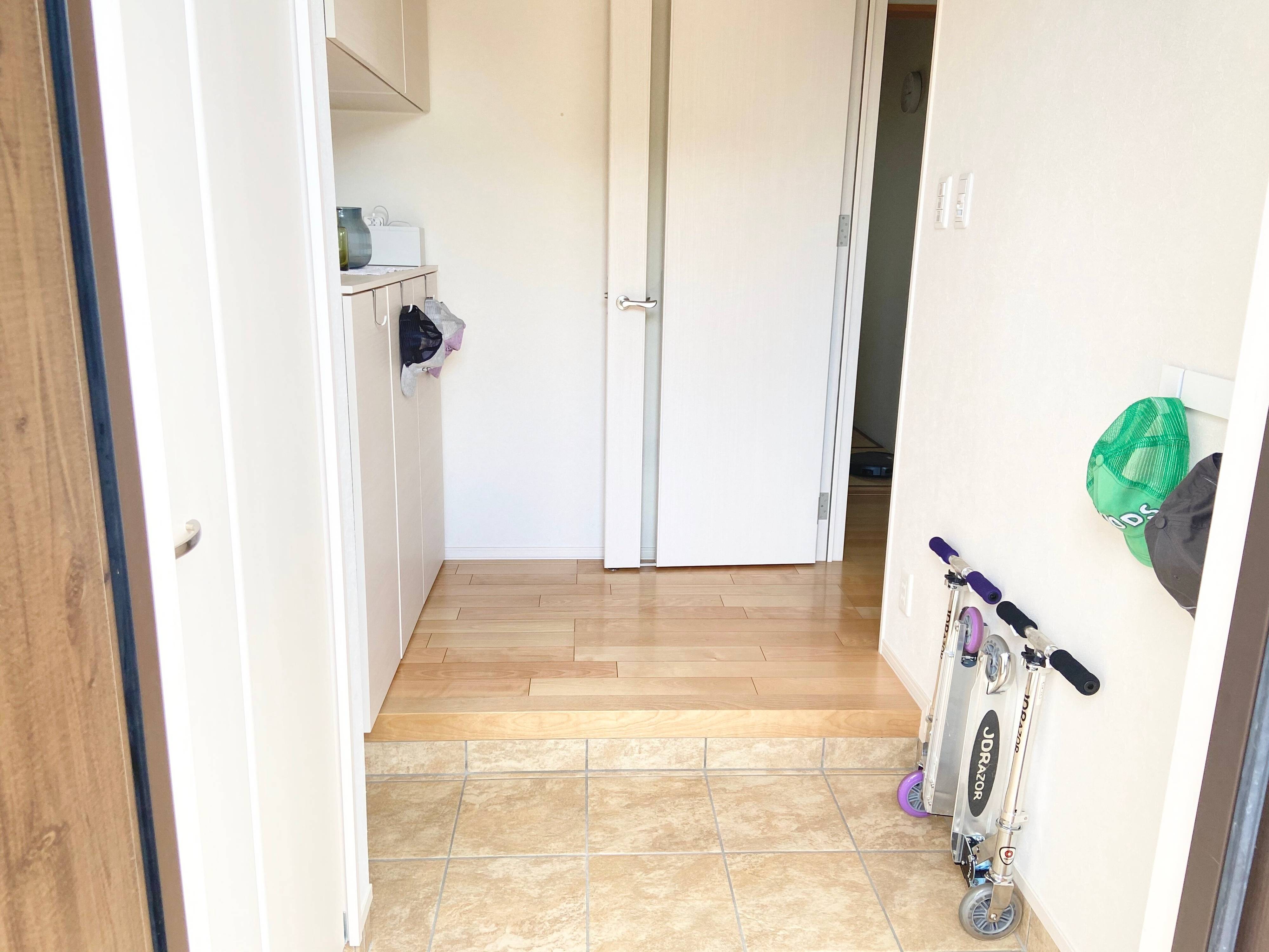 モノの量をキープして、入ってくるモノの一時置き場所にさえしなければ、玄関が大きく乱れることはありません!あとは気がついた時に、ゴミを掃き出したりすればいつでも簡単キレイがキープできます。とっても余裕がある時に、汚れたタイルだけ拭き掃除したりできればもう完璧です!家族がお家に帰った時一番最初に目に入る玄関は常にキレイを簡単キープしていきたいですね。