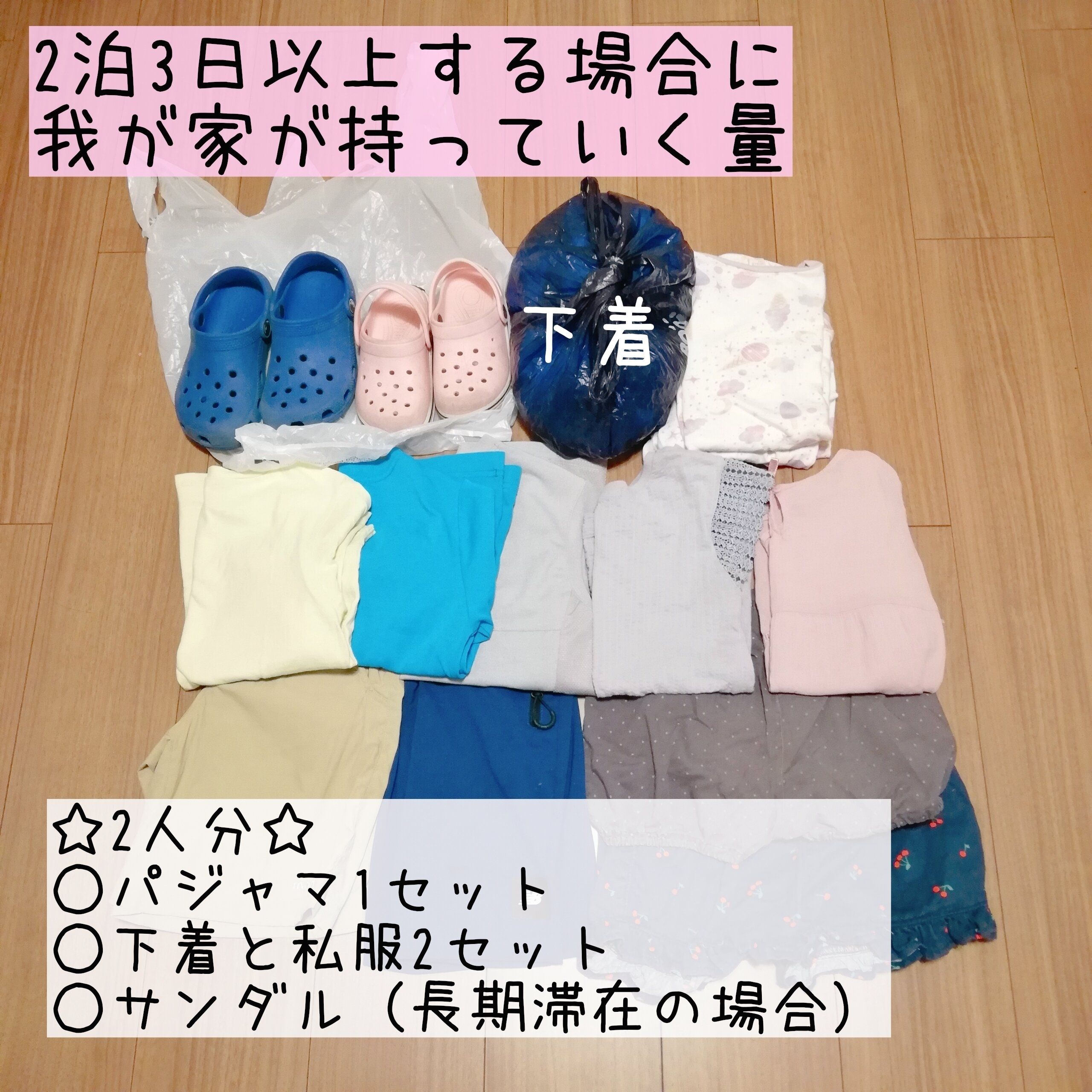 我が家が2泊3日以上する時に持っていく夏服の目安はこの位の量になります。