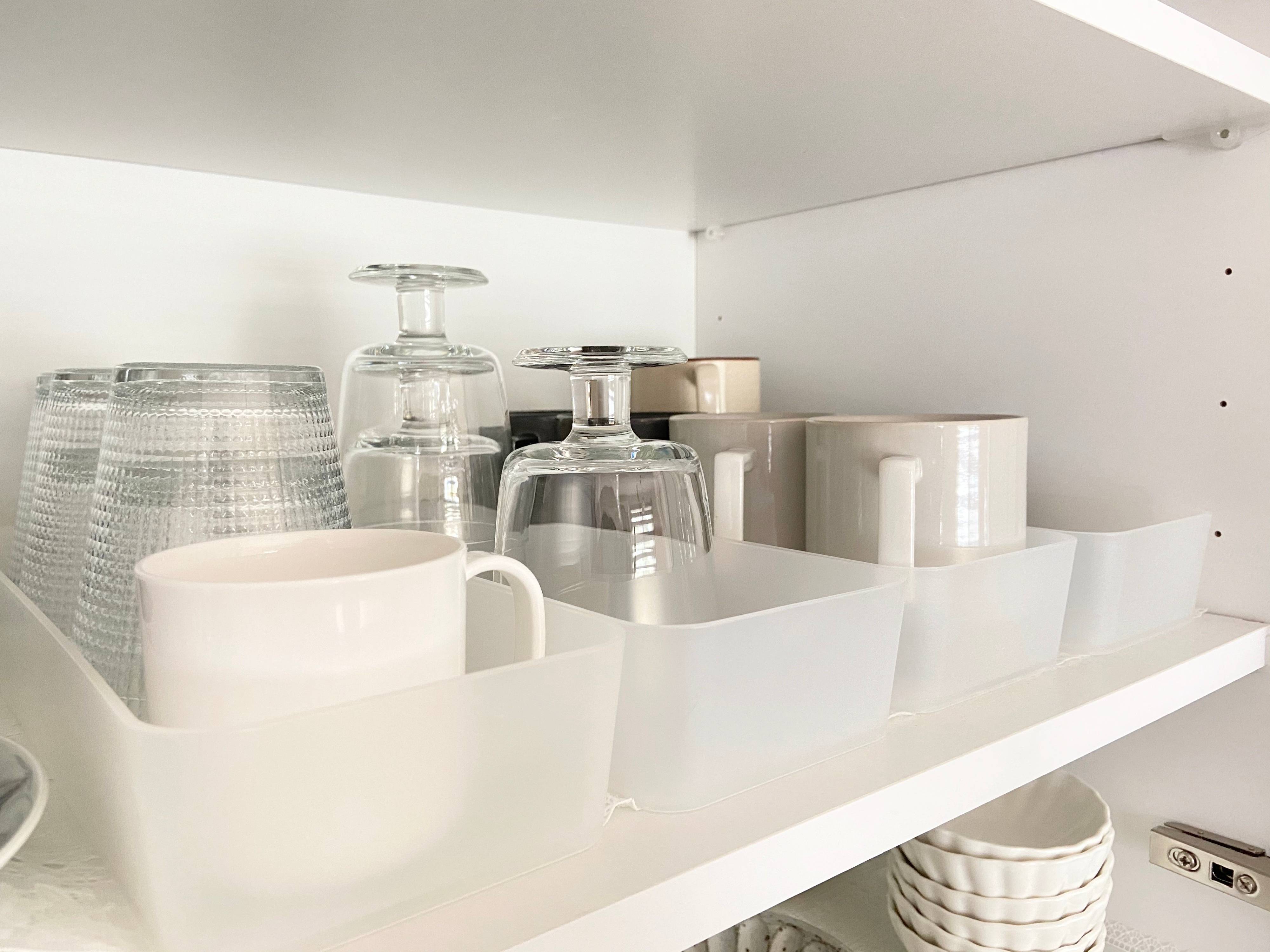 我が家ではコップを種類別で入れて収納しています。奥に入っていてもケースを引き出せば簡単に取り出せるのでとっても便利です。