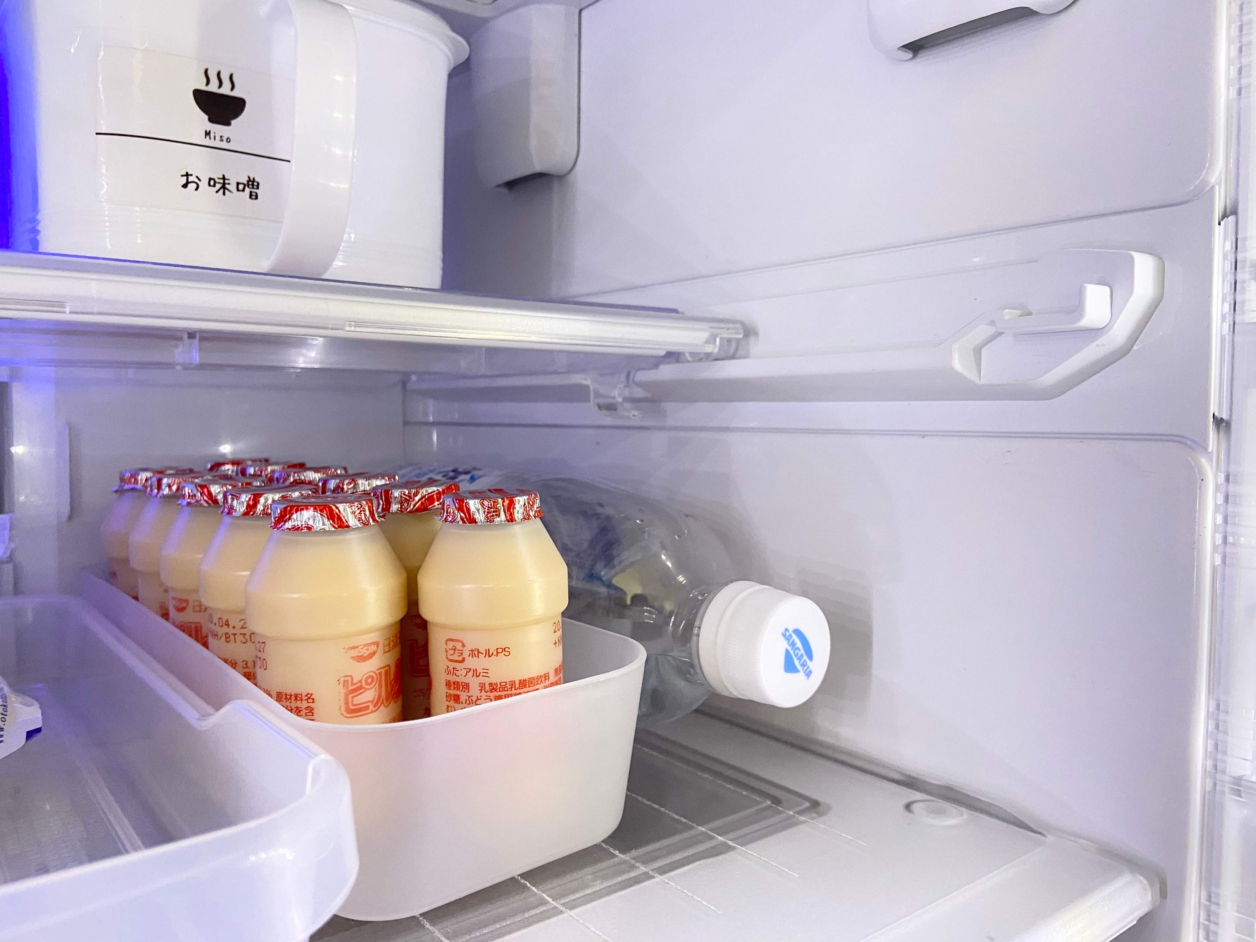 またこの奥行きが役に立つのが冷蔵庫。我が家ではピルクルの収納に。ちょうど10本綺麗に収納できるので愛用しています。