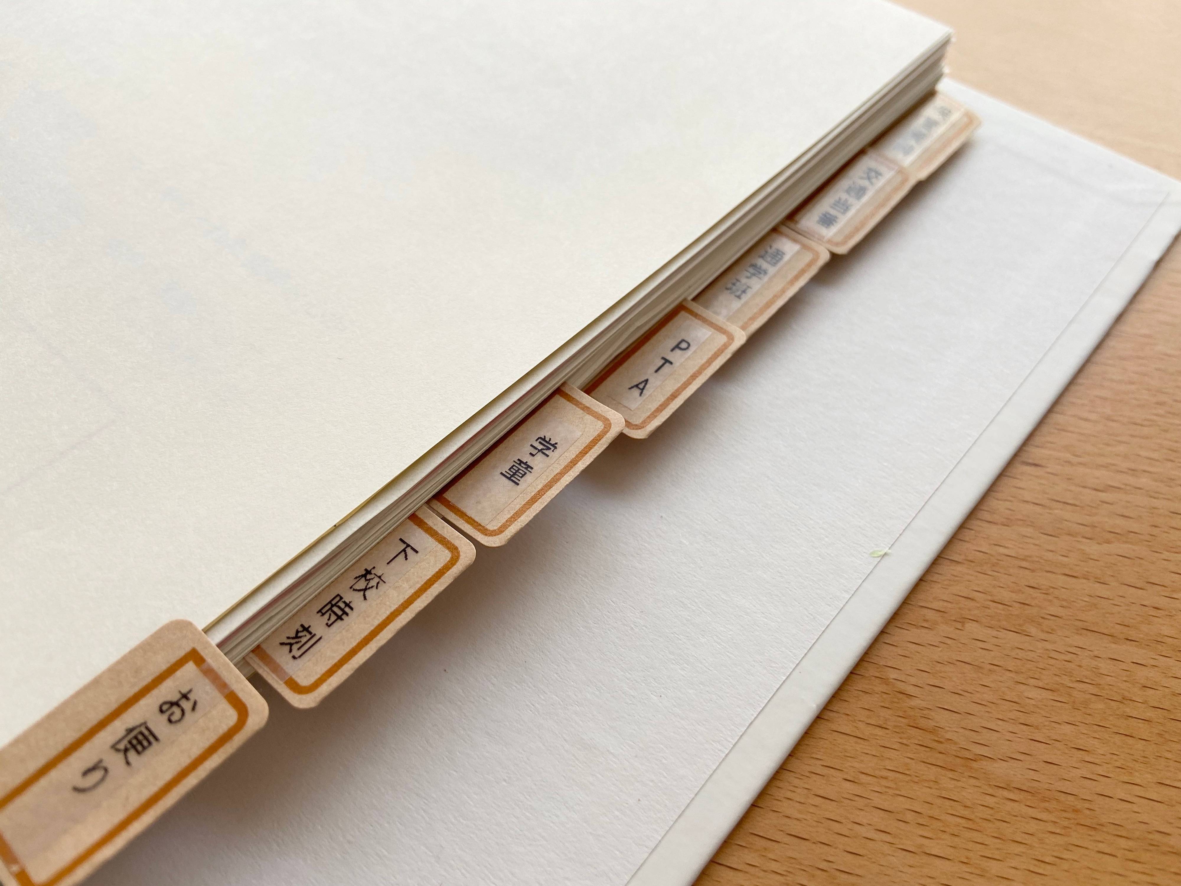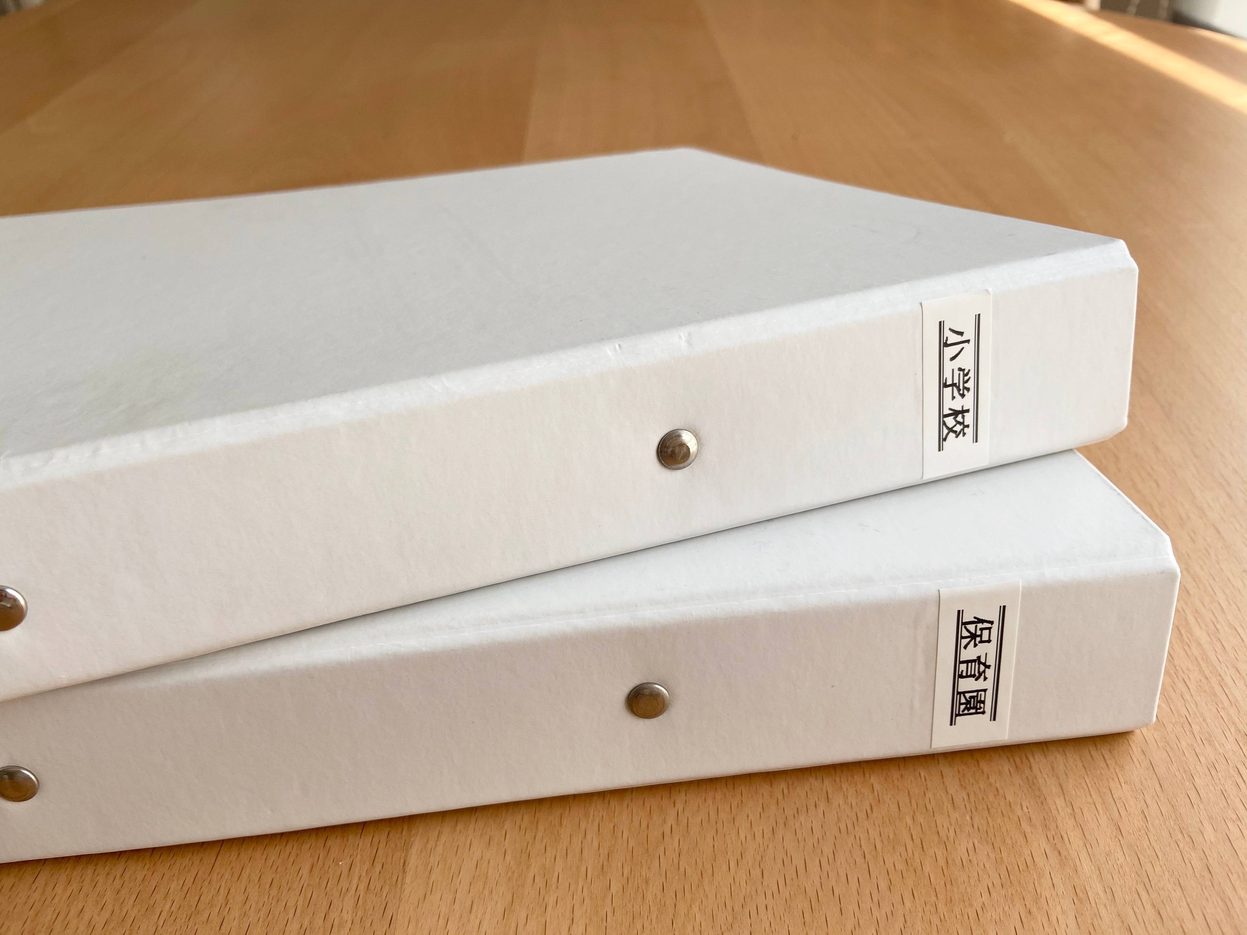 我が家ではダイソーの2リングファイルに、7つに分類して仕分けています。