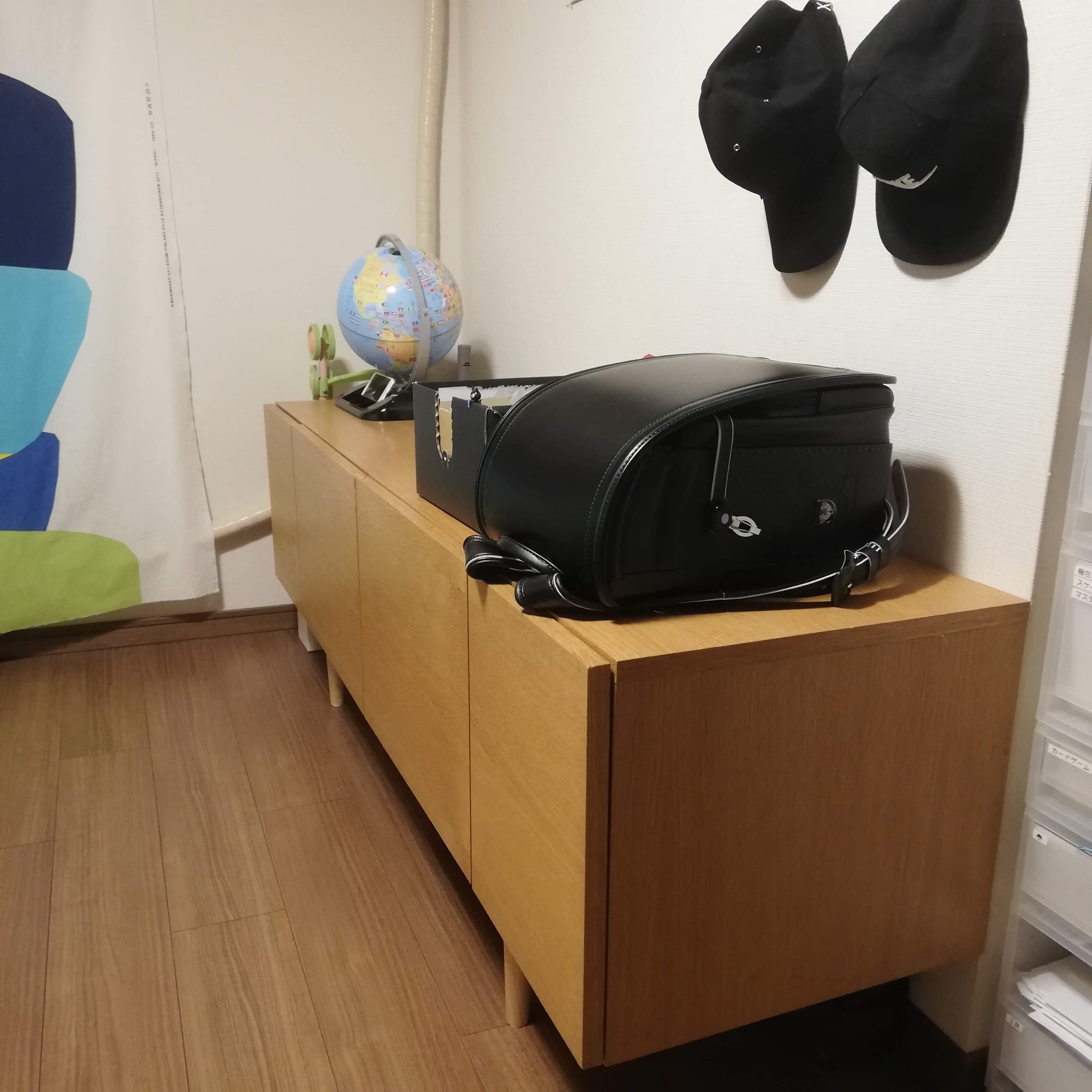 大型テレビがなくなると、テレビを置く必要がなくなったので、現在は子供のおもちゃ入れやランドセル置き場として子供部屋で使っています。