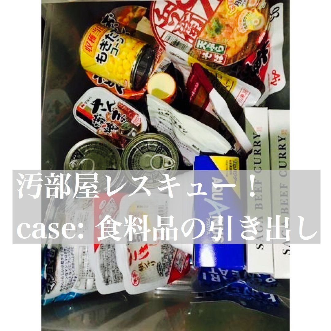 今回のお部屋レスキュー!は4の食料品の引き出しです。お悩みは非常時のローリングストック用に食品をまとめているが、高さのあるものとないものを同じ引き出しの中でうまく収納できないとのことです。