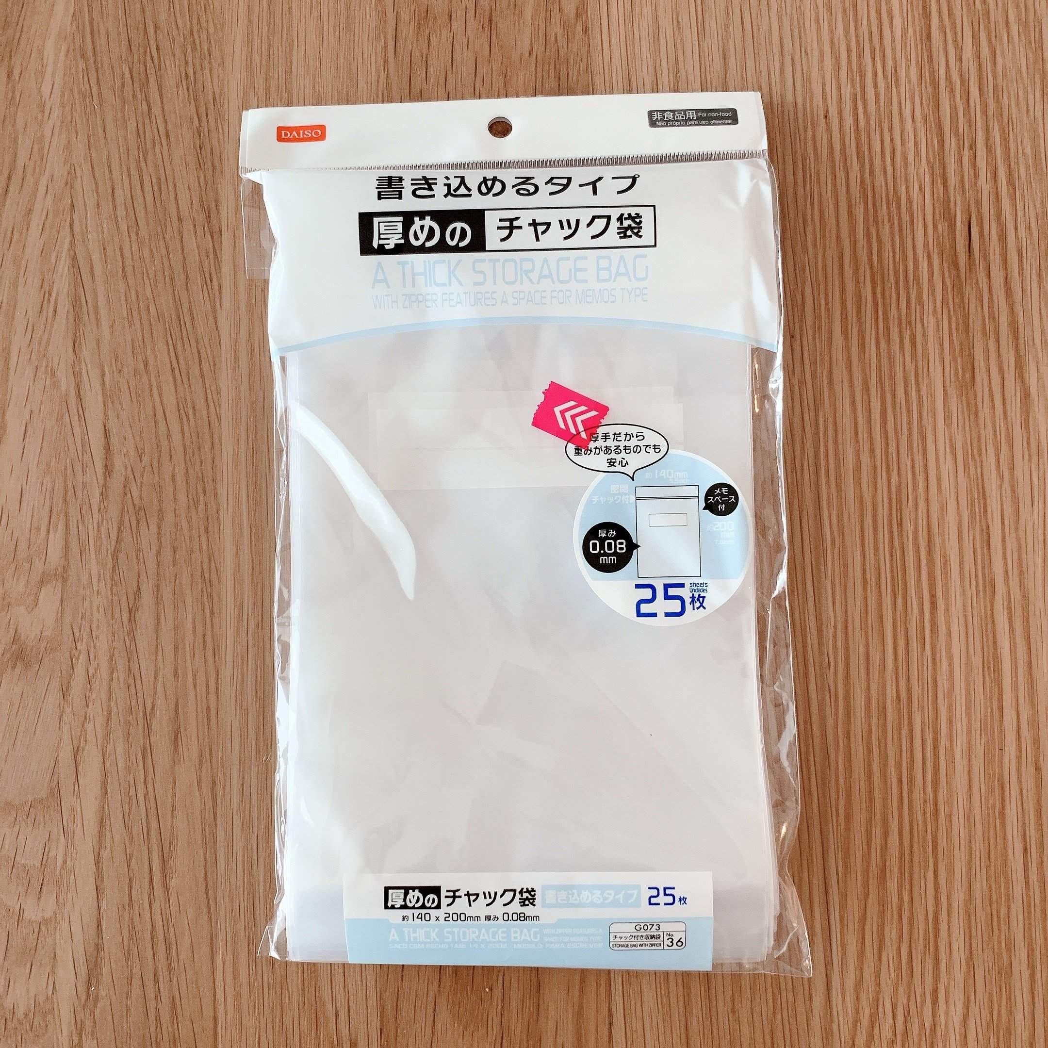そして何と言ってもこの袋のメリットは「書き込める」こと。箱や容器を入れ替えるときのアドバイスとしてよく「ラベリングをするといいよ!」言われますが、ラベリングって面倒ですよね?このチャック袋なら直接書き込めるのでとっても簡単!