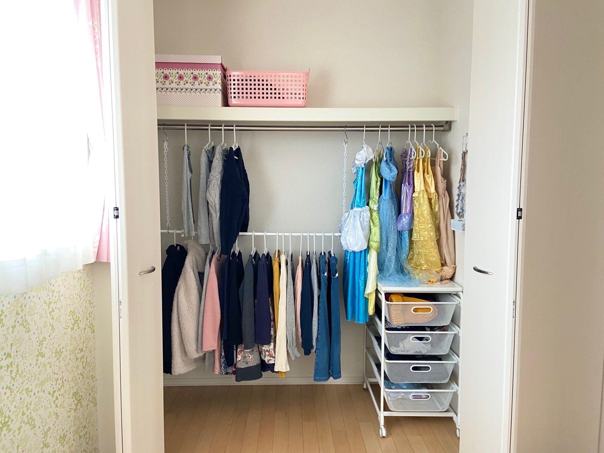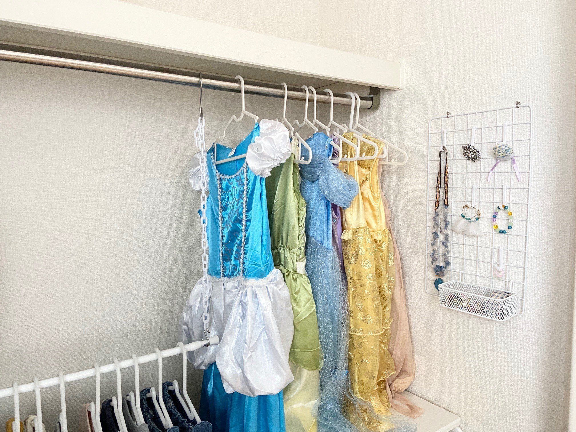 ドレスやアクセサリーの収納も