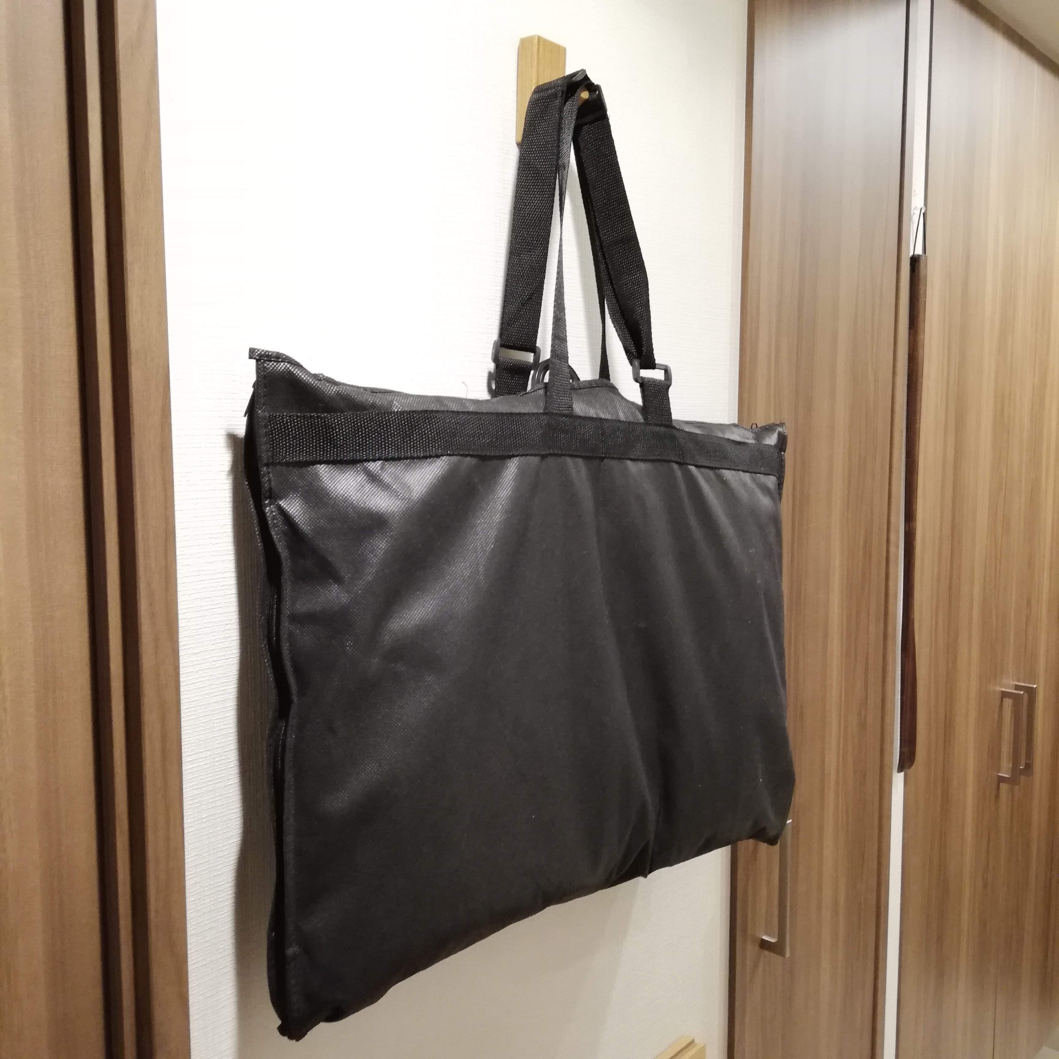 なんとこの衣類カバー、持ち運びもできるバッグにも変身するのです!