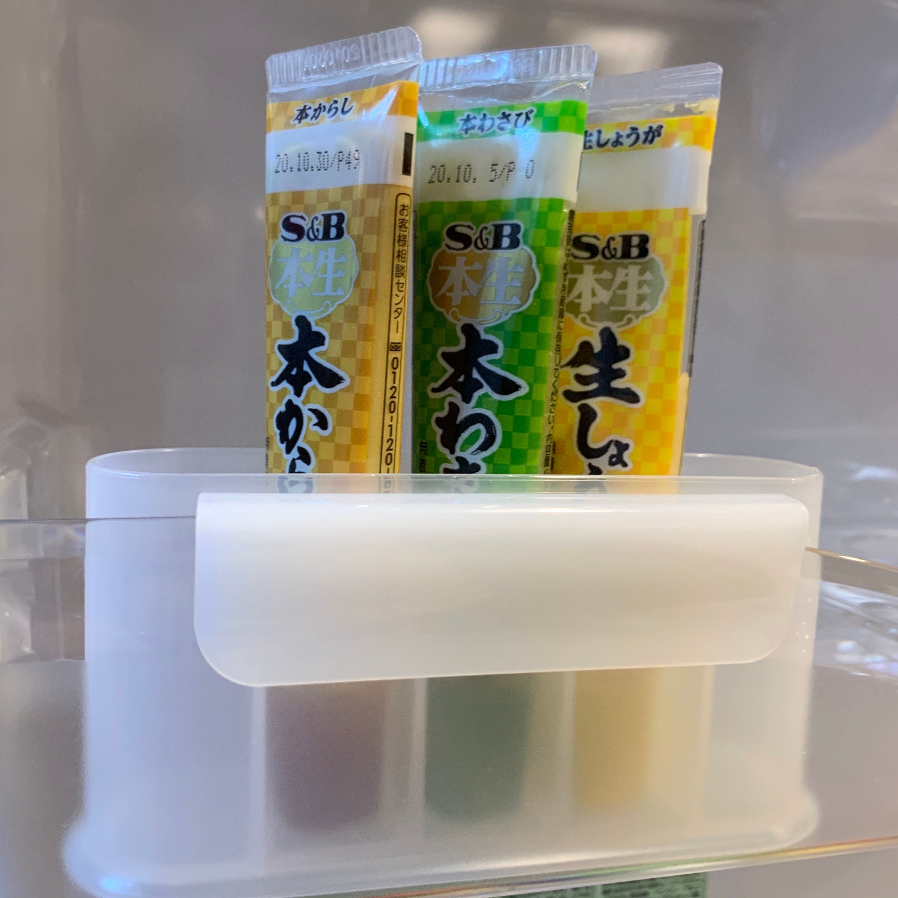 ワサビやしょうがなどの薬味チューブは収納しにくいアイテムですが、このチューブスタンドを使えばコンパクトに収まります!