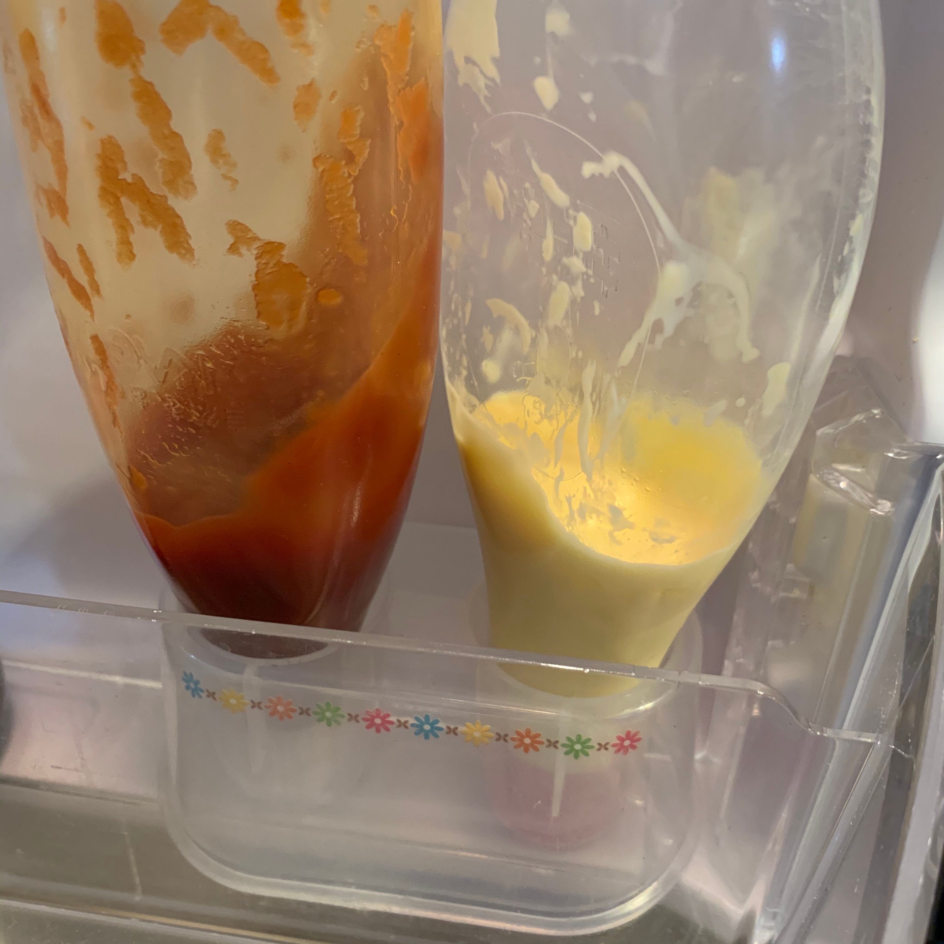 マヨネーズとケチャップがちょうど一本ずつ収納できます。(そろそろ新しいのをチャージした方が良い残量)