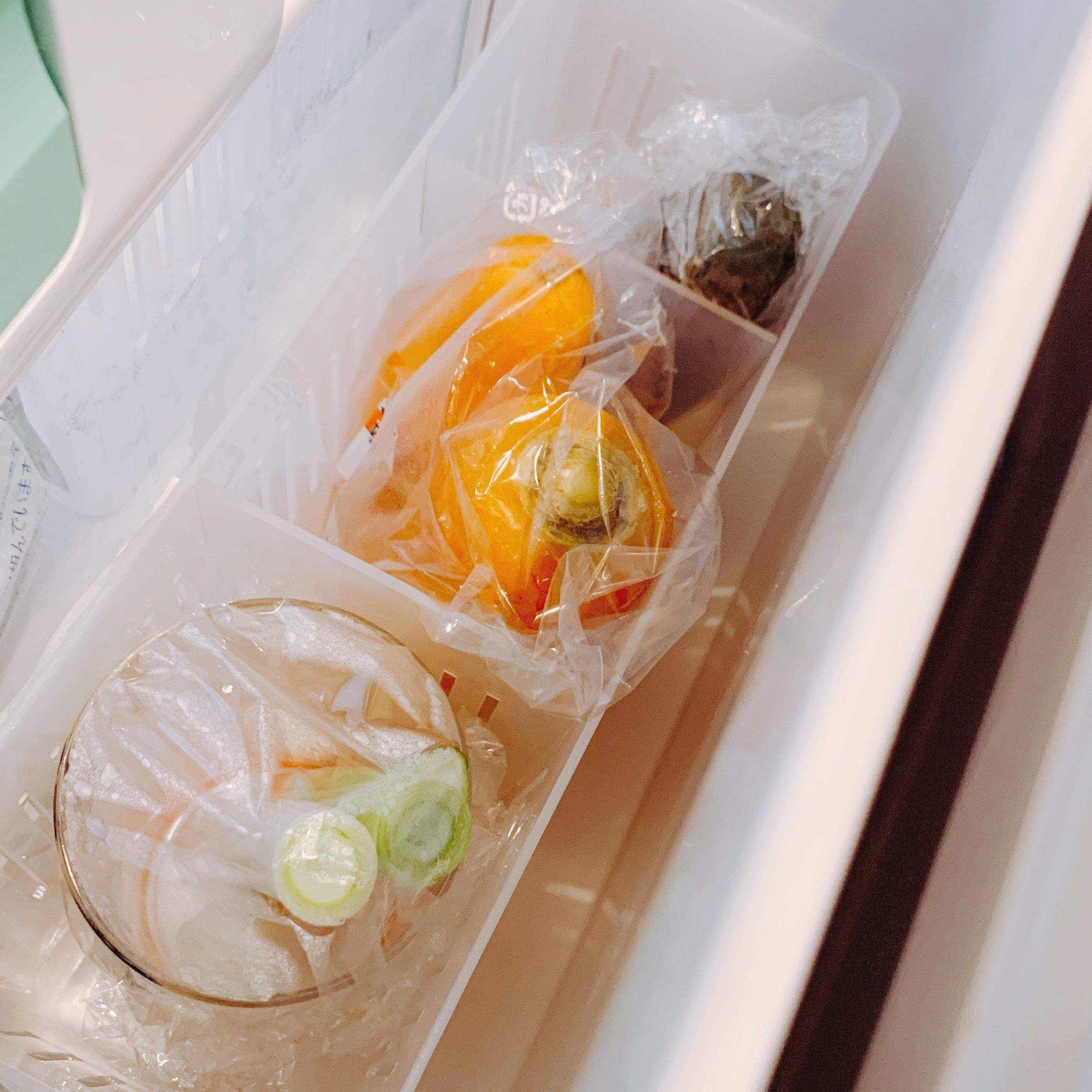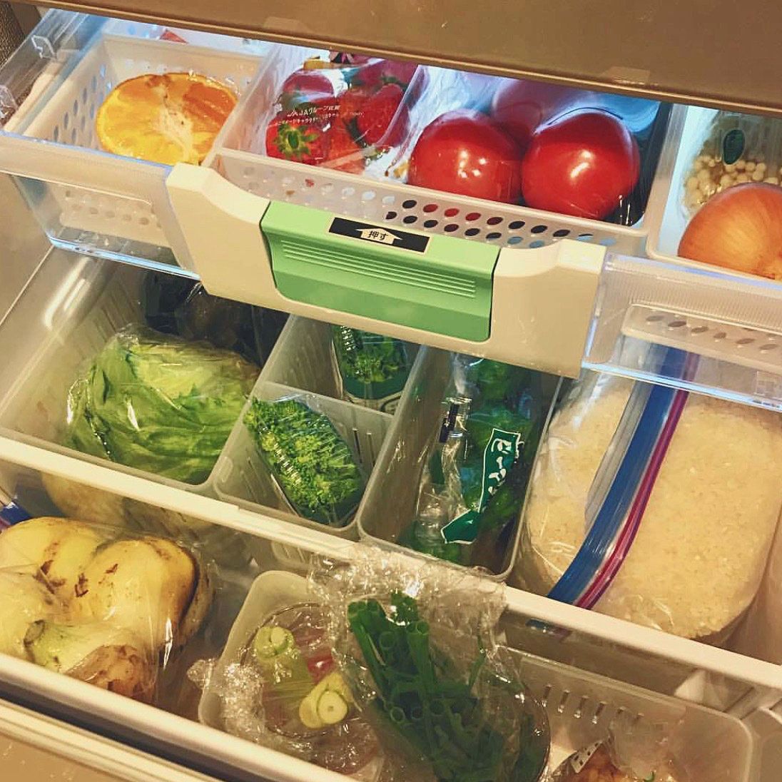 野菜室は大きさの違うプラスチックケースを組み合わせて収納。100均のケースはサイズのバリエーションが豊富なので、自宅の冷蔵庫に合わせて選べるのがありがたい!