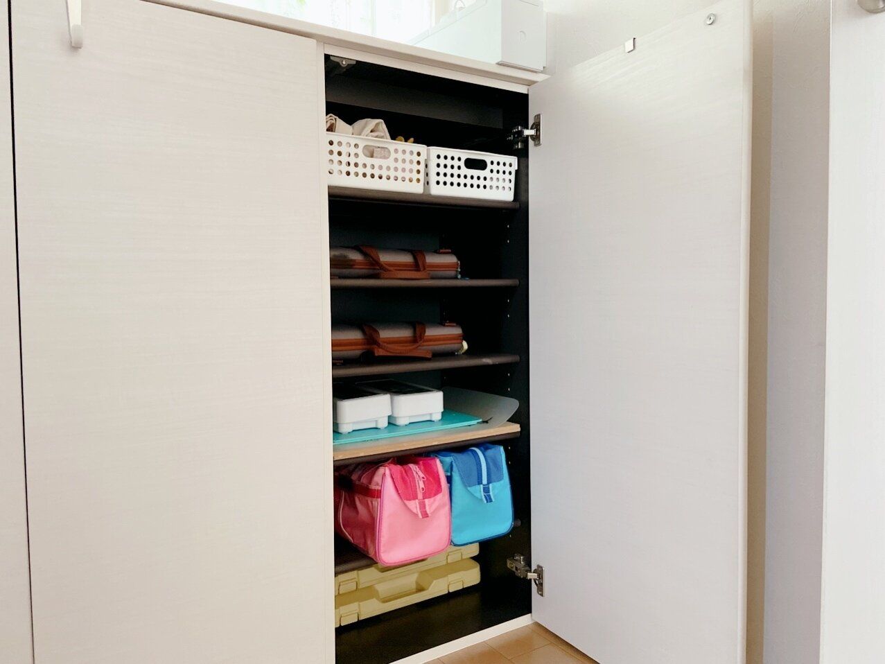 子どもにとって便利で楽ちんな場所に、一番歩数・手数の少なくなる形で収納を作るのがベストです。よくわからないという場合は、物が置き去りにされる場所から最短歩数の場所にドアや引き出しを開ける手数が極力少ない形で収納を作ってみてください。