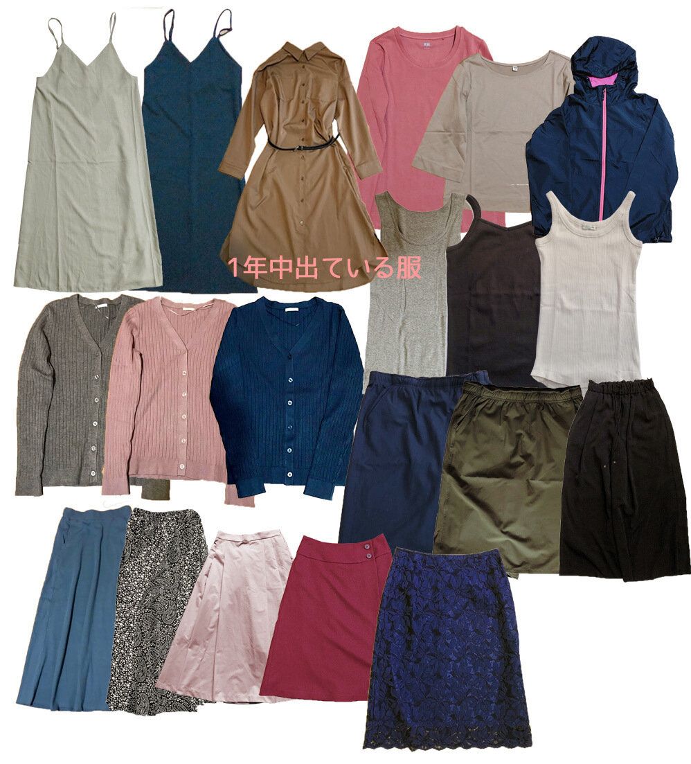 1年中同じ服ばっかりになりそうなところですが、ここに当てはまる服は買い替えて手放す機会も多い服なので、意外と大丈夫。
