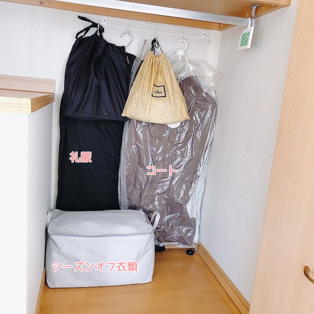 クローゼットの奥にシーズンオフの衣類をまとめています。