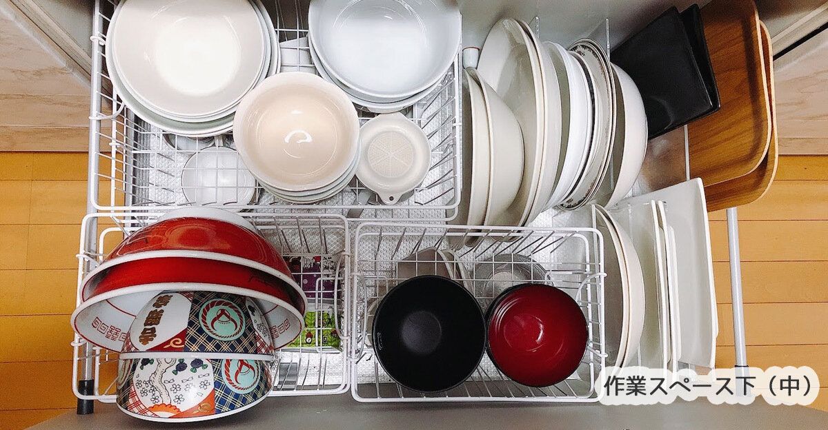 食器棚はなく、我が家の食器はコップ類以外すべてここに
