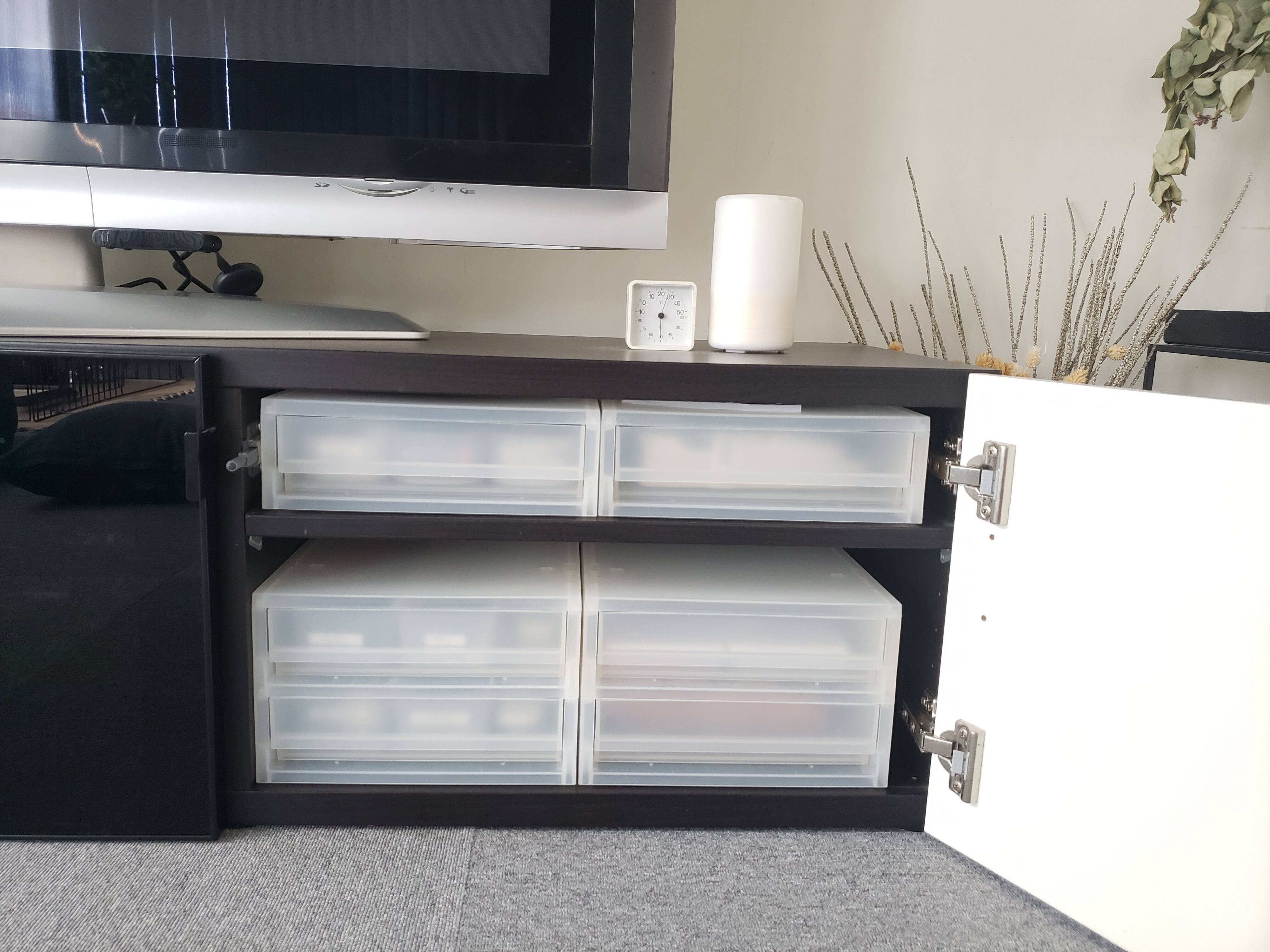 テレビボードの中も引き出し収納!