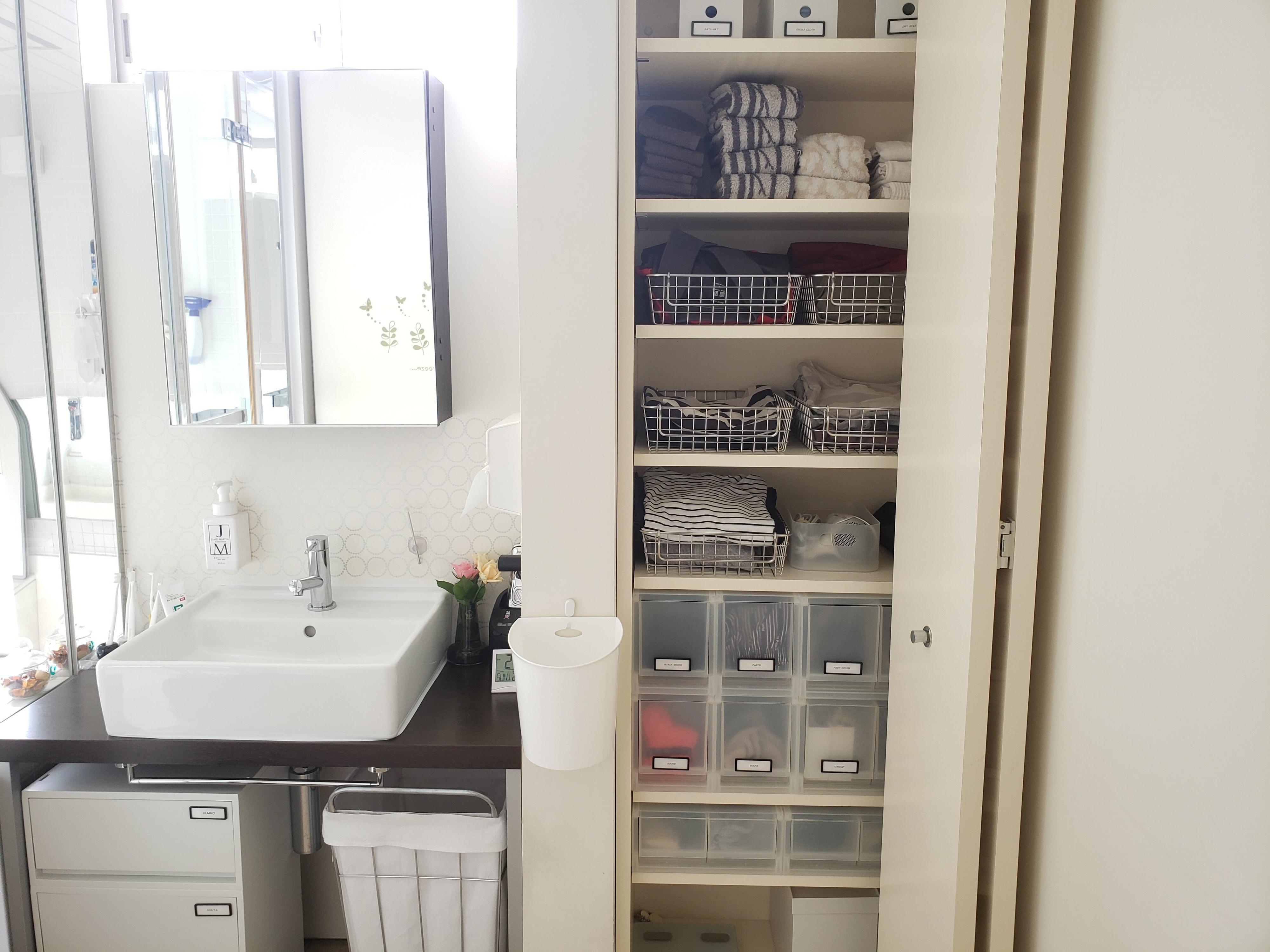 洗面所はワイヤーラック収納と引き出し収納でスッキリ!