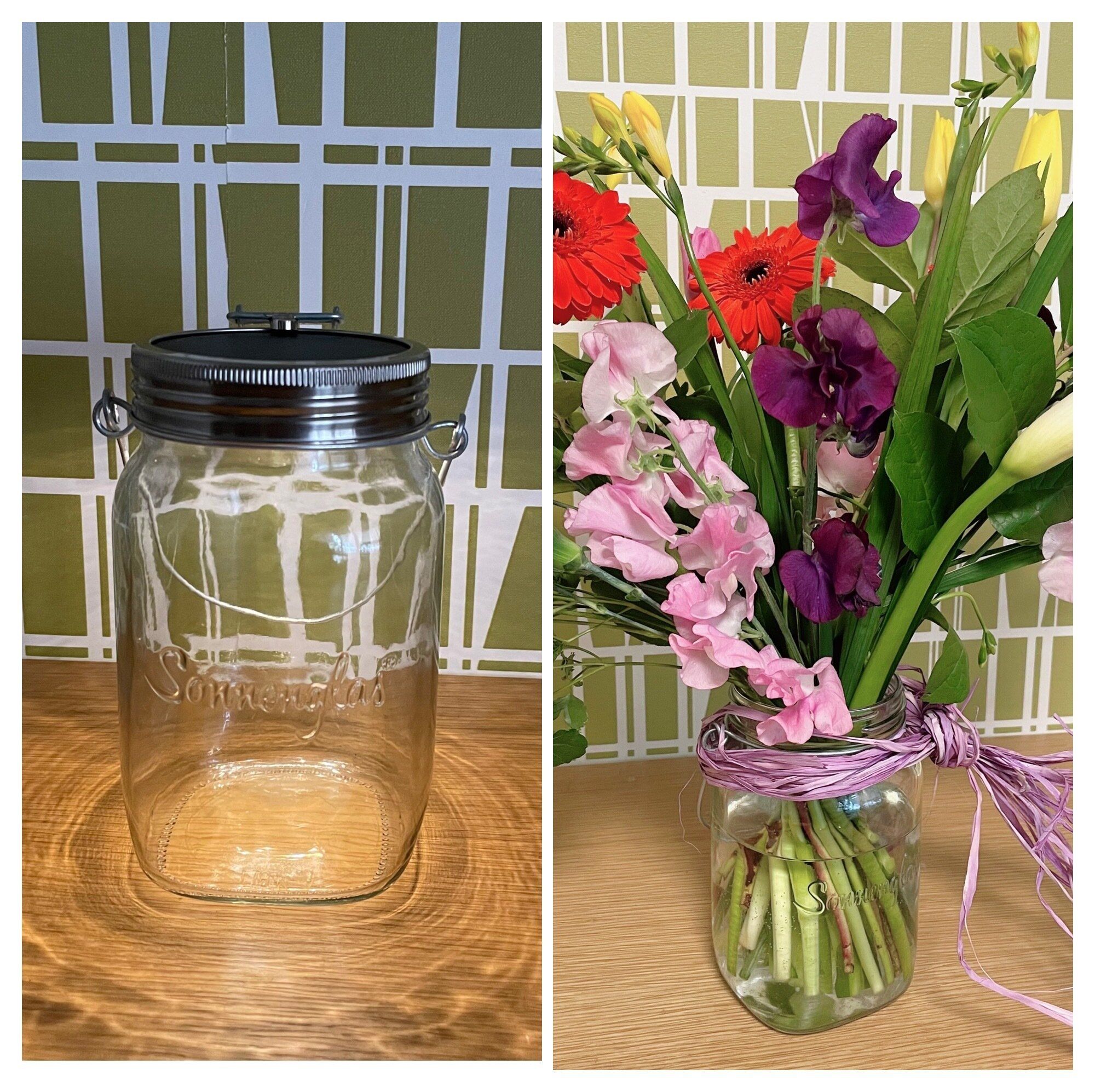 例えば、普段は間接照明として使っている「ソネングラス」の蓋を取り、瓶をフラワーベースとして使用しています。