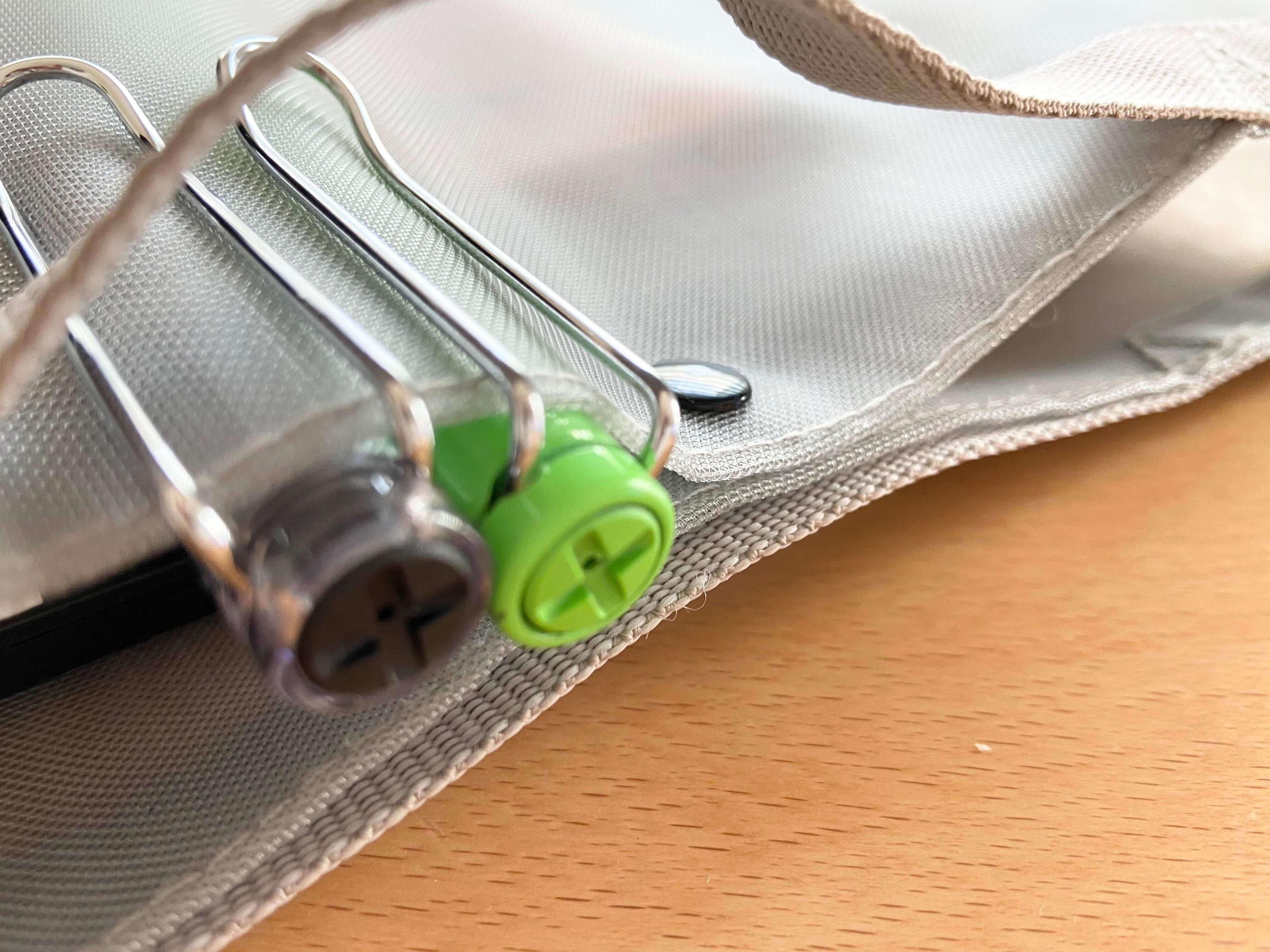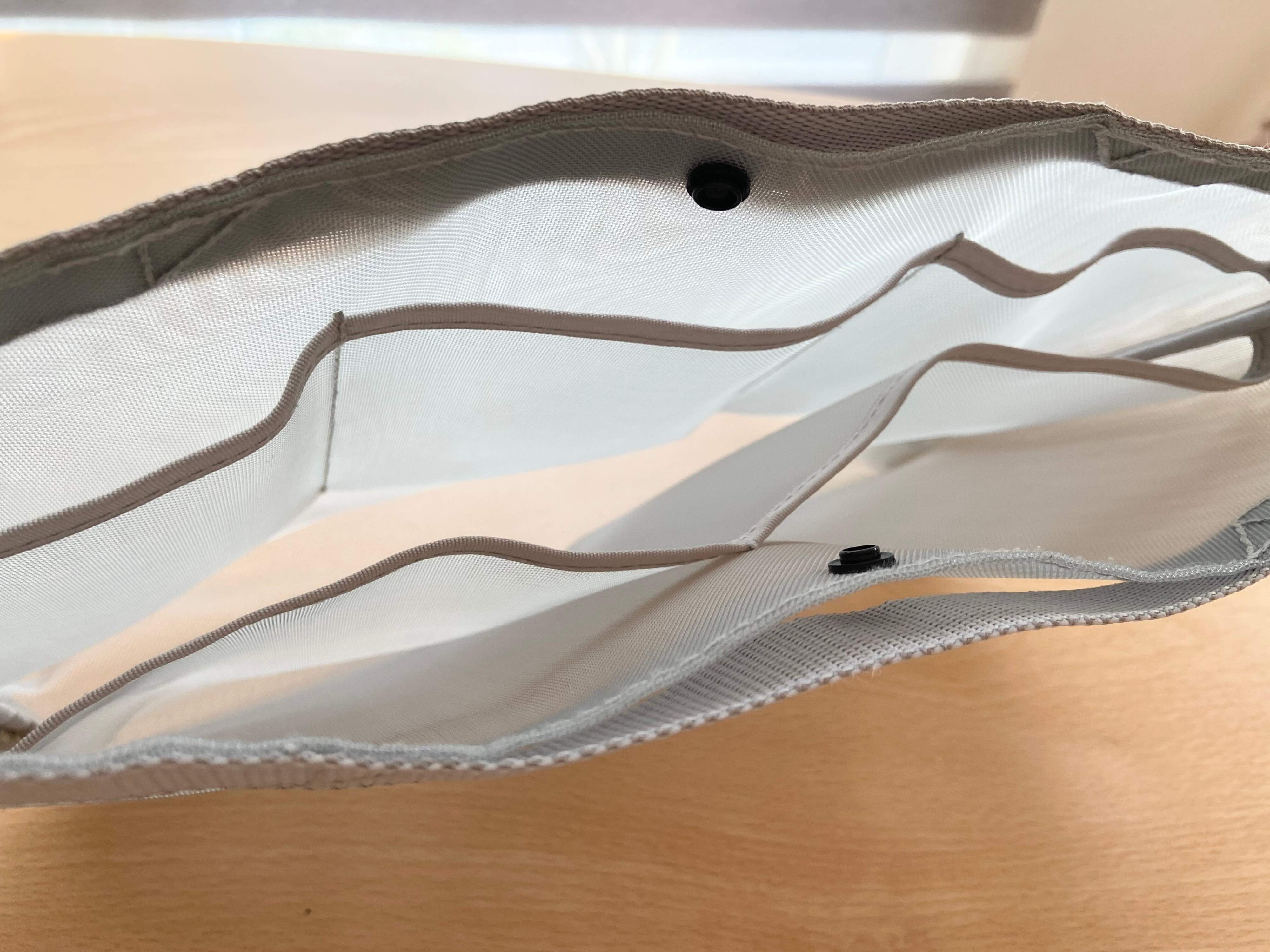バッグインバッグが常にまっすぐな状態でカバンの中に入っていれば問題ないですが、横たわった時に中身が飛び出たりしていると元に戻すのが面倒ですよね。無印良品のバッグインバッグはスナップボタンがついているので、簡単に中身が飛び出すこともなくバッグインバッグ内の定位置をキープできます。