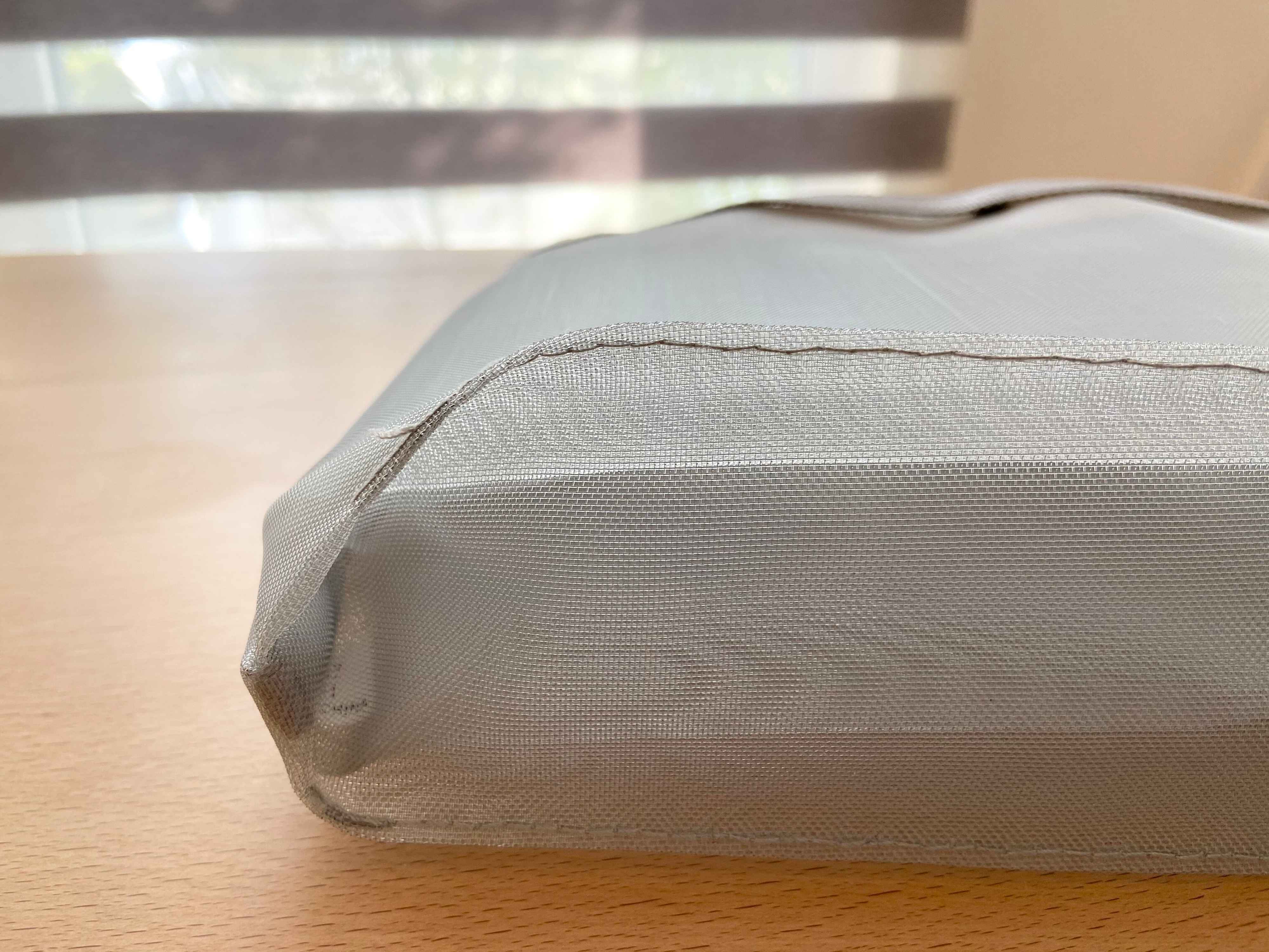 無印良品のバッグインバッグはナイロンメッシュの素材で軽量かつ丈夫な素材。汚れてもささっと拭いて綺麗にできます。