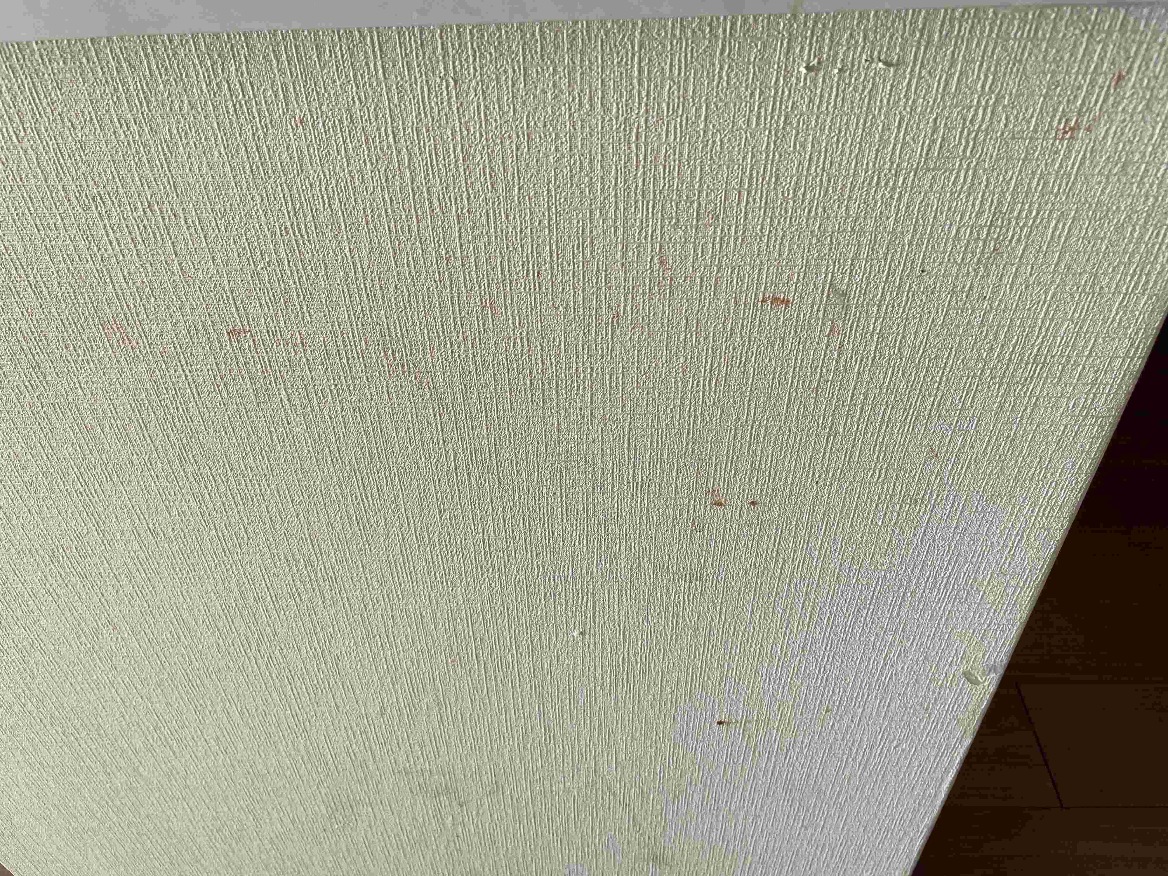 近くに寄ってみると、防汚加工されていない壁紙を貼った為、汚れや落書きの跡がはっきりと分かります。