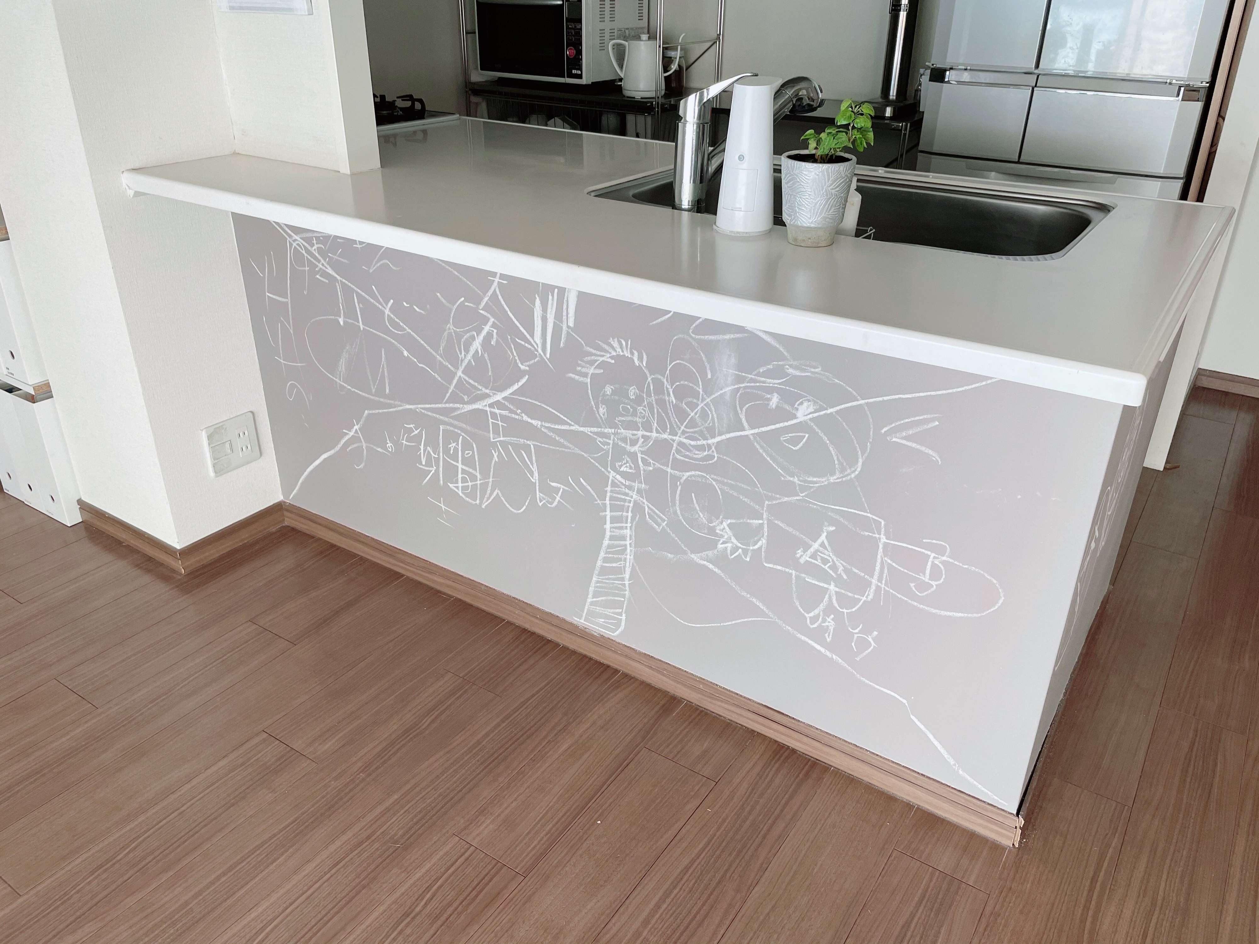 なんと、チョークで落書きができる「黒板壁紙」でした!
