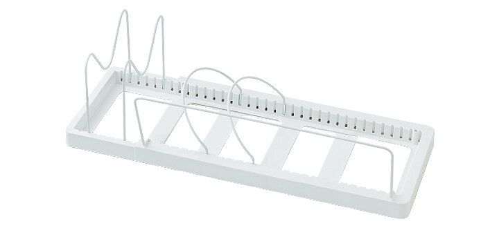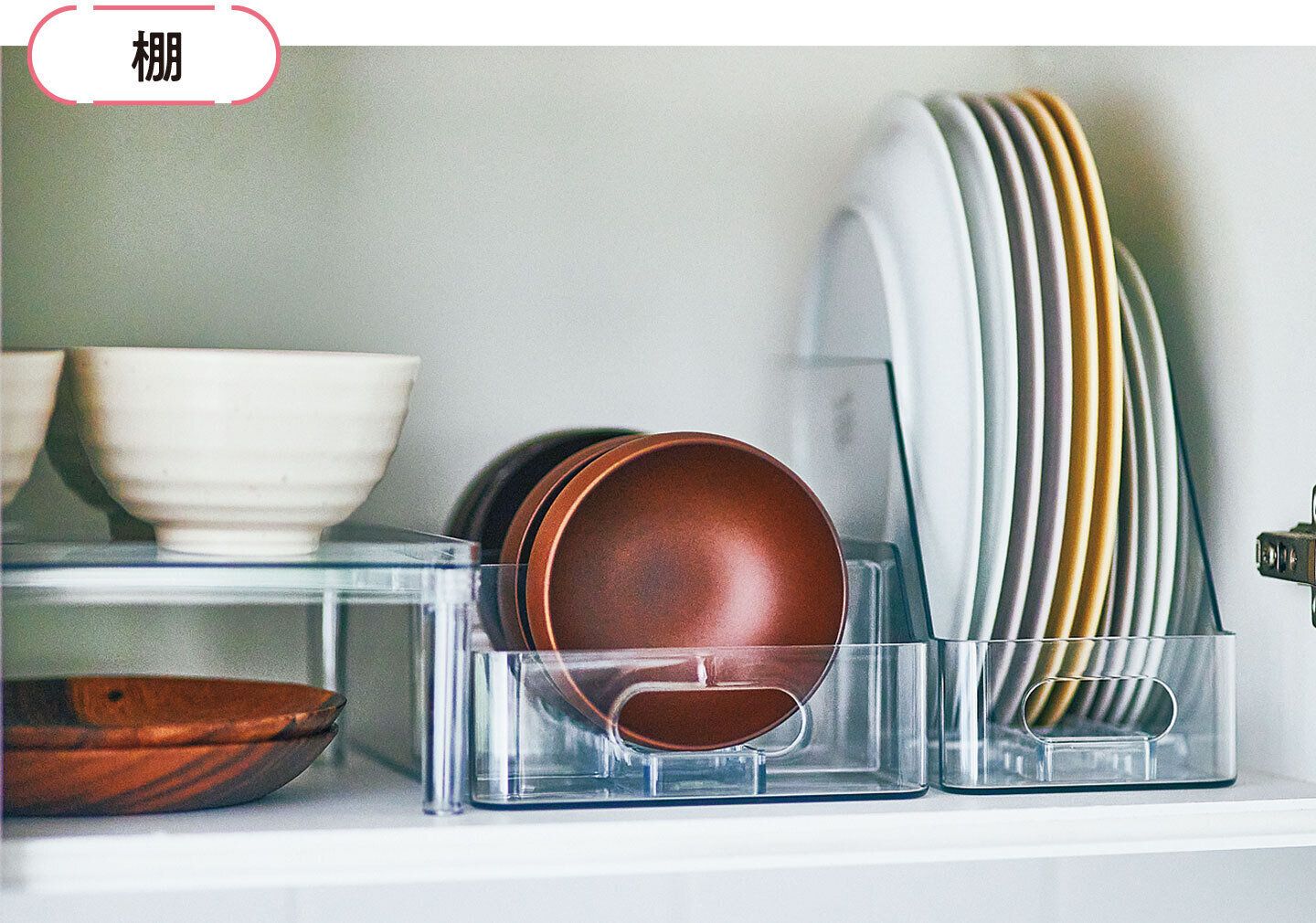 食器は種類別に分ける&できるだけ重ねないでしまうことが大切。棚を上下に区切れるラックと、プレートやボウルを立ててしまえるスタンドで、取り出しやすさが向上!