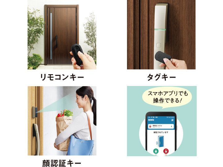 ドアから離れていても操作できるリモコンキーや近づければ施解錠できるタグキーに加え、顔認証キーも。「荷物を抱えたまま開けられるって便利!」