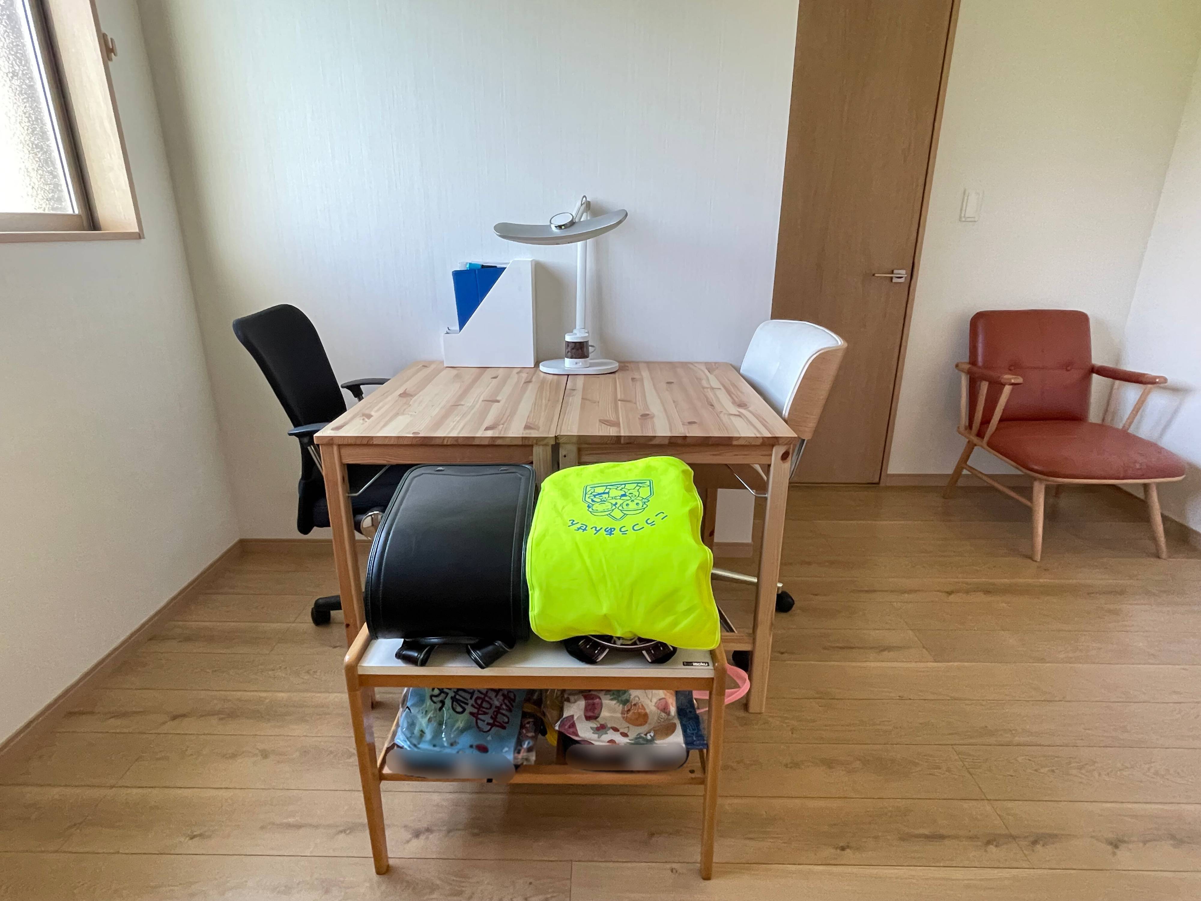 ランドセル専用収納もありますが、我が家ではあえて「サイドテーブル」で収納することに。
